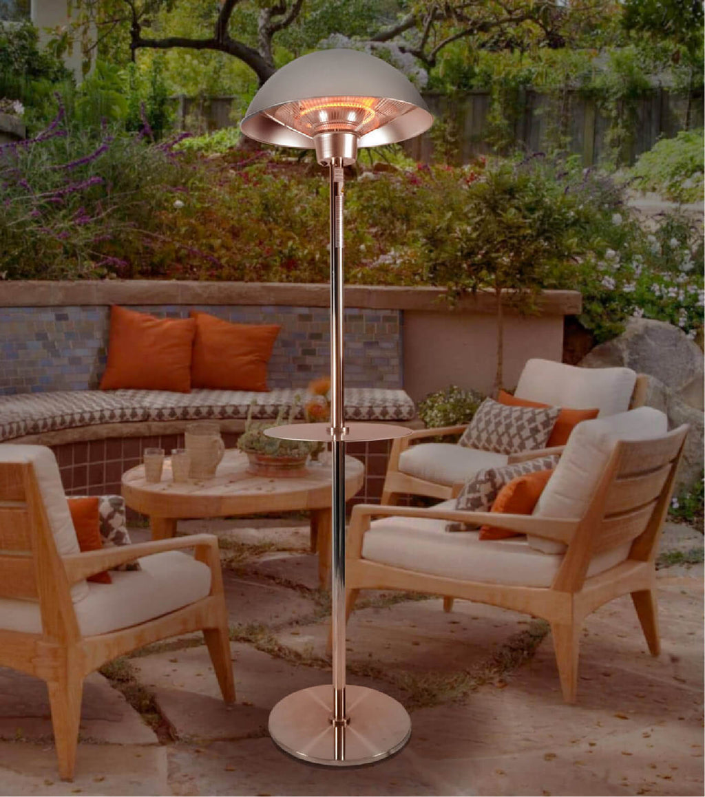 Stufa Elettrica ad Infrarossi Ø50 cm a Piantana 2000W con Tavolino per Esterni Nera