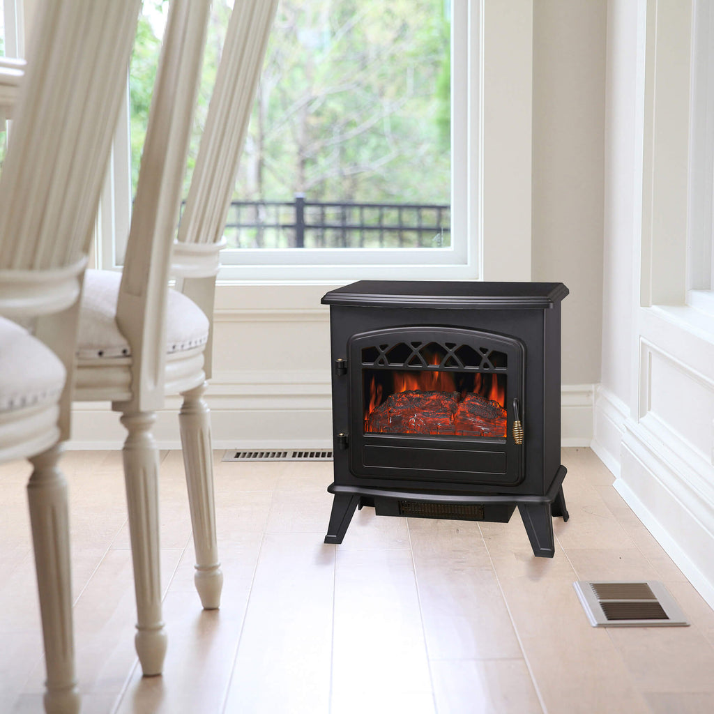 Stufa Elettrica da Pavimento Effetto Fiamma 1850W Vannini Ilona Nero