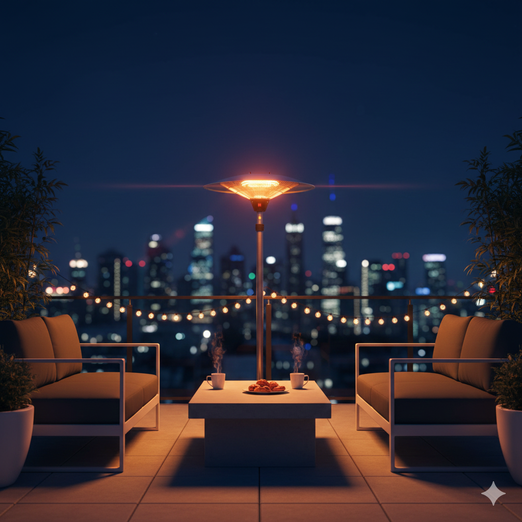 La tecnologia a infrarossi assicura un calore diretto, silenzioso e privo di emissioni sgradevoli di fumo o gas, perfetto quindi anche per spazi chiusi o semi-aperti.