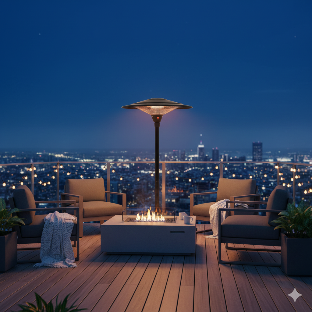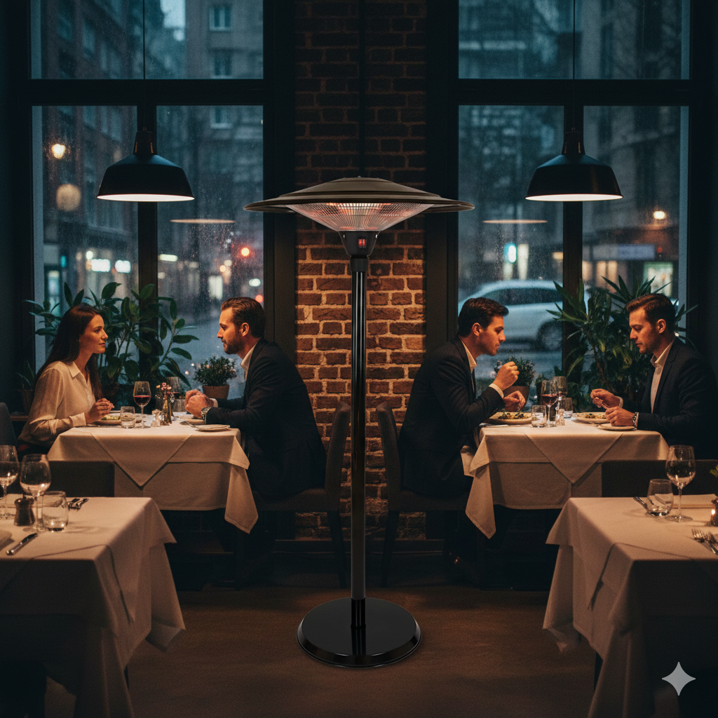 La tecnologia a infrarossi assicura un calore diretto, silenzioso e privo di emissioni sgradevoli di fumo o gas, perfetto quindi anche per spazi chiusi o semi-aperti.