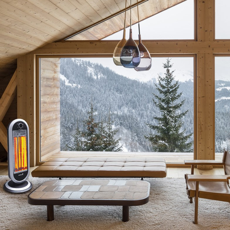 La stufa in fibra di carbonio con elementi ha una potenza che può oscillare da 450-900W con 220-240V e 50/60 Hz. E' potente, trasportabile, oscillante. Potrete riscaldare piccoli e medi ambienti, in poco tempo e senza dispersione di calore garantendo un notevole risparmio energetico. E' possibile selezionare la potenza desiderata dalla manopola di base e scegliere la modalità giusta per te. Il flusso del calore può essere direzionato arrivando l'oscillazione automatico con angolo di 90°.