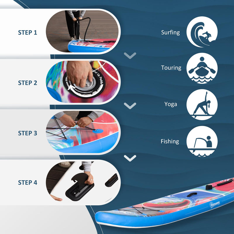- PADDLEBOARD CON ACCESSORI COMPLETI: Questa stand up paddle board gonfiabile è dotata di 1 pagaia regolabile in alluminio, 1 set di riparazione, 1 pompa d'aria, uno zaino e 3 pinne posteriori. Offre una stabilità ottimale per fare stand up paddling al lago e su acque calme.