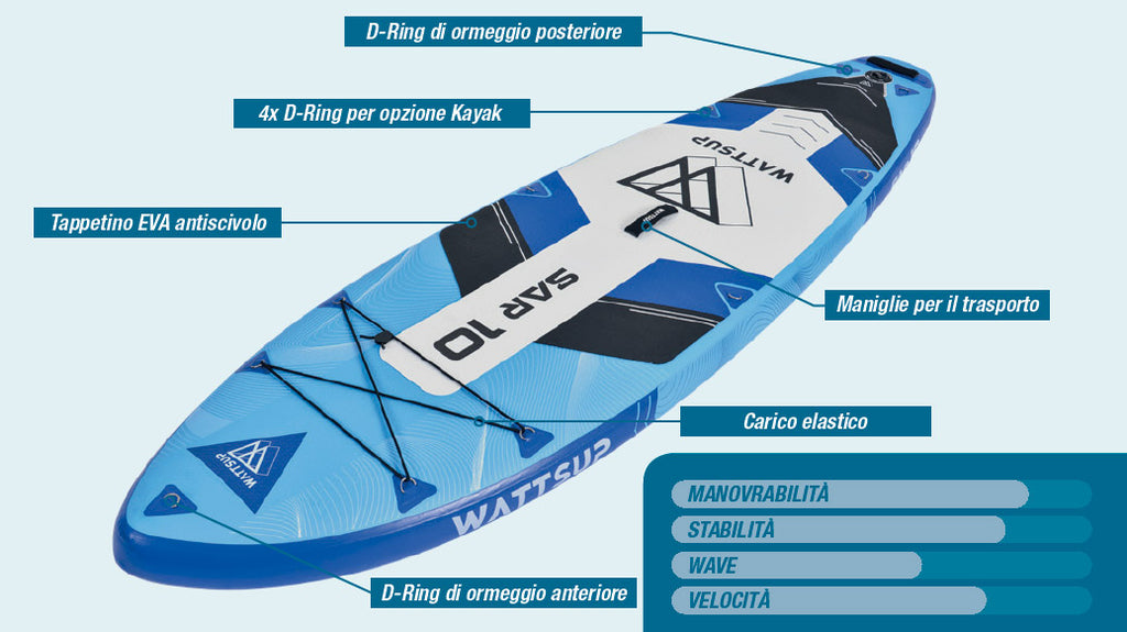 SUP Tavola Gonfiabile 305x81x15 cm con Pagaia Zaino e Accessori Wattsup Sar Blu