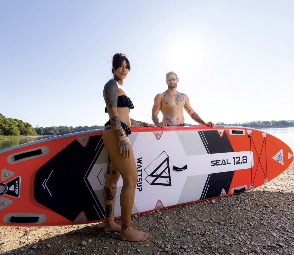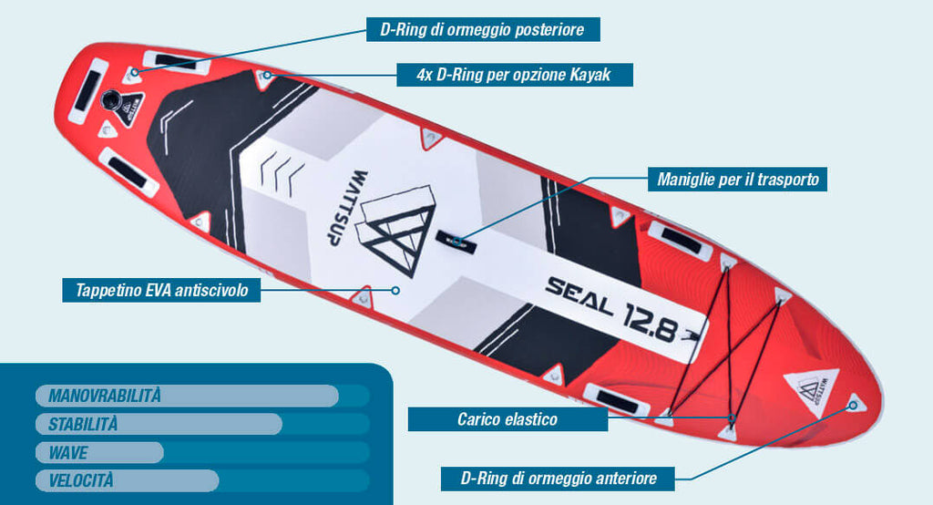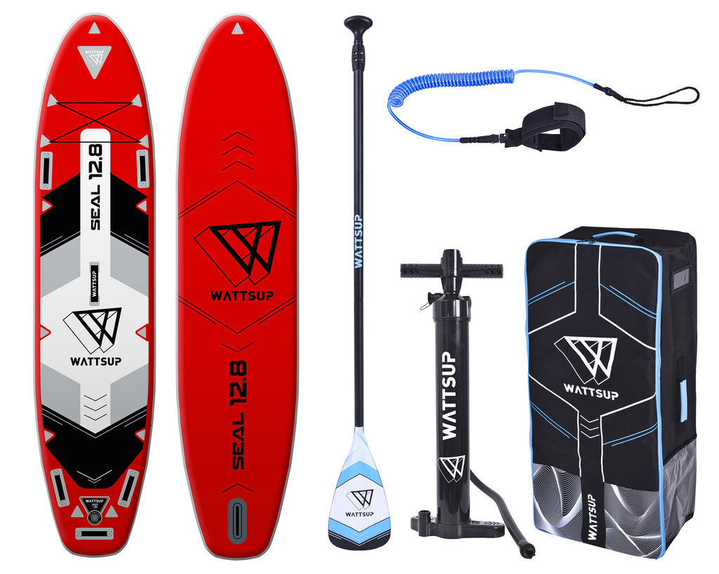 SUP Tavola Gonfiabile 388x91x15 cm con Pagaia Zaino e Accessori Wattsup Seal Rosso