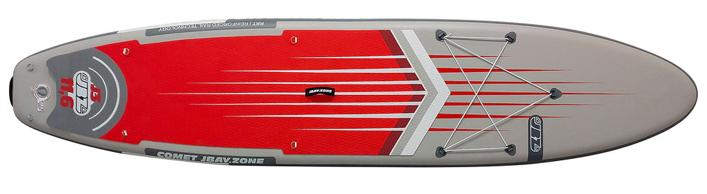 Per lo Stand Up Paddle Gonfiabile JBAY.ZONE Comet J3 è stata utilizzata la tecnica di costruzione 2LF Fusion Drop-Stitch Technology per rendere il SUP ancora più leggero e resistente, ed il rail è stato rinforzato con l'esclusivo inserto RRT per rigidità e resistenza extra sulla parte più sollecitata dello Stand up Paddle. Il Deck da 350x81cm è ampio e comodo, e rende il SUP Comet J3 molto versatile ed utilizzabile per diversi tipi di escursione acquatica. Pagaia allungabile, borsa trasporto, pompa Bravo a Doppia Azione, supporto GoPro e cavigliera sono inclusi nella confezione.