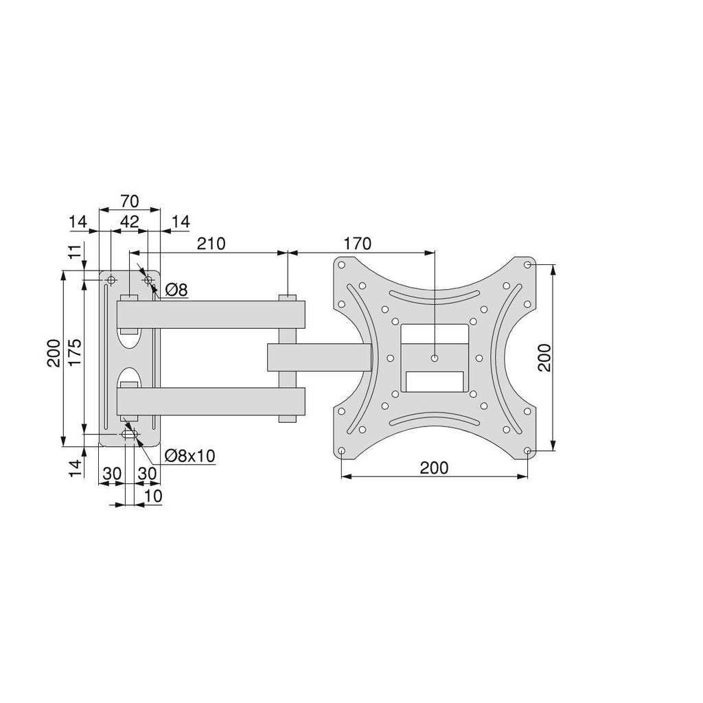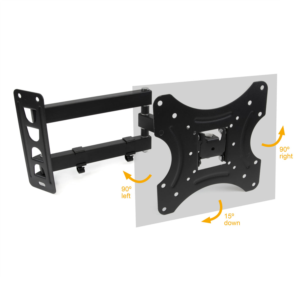 Supporto da parete per televisore adatto a TV da 14 a 55 pollici con un peso fino a 32kg. La soluzione ideale per appendere lo schermo al muro e godersi comodamente la TV in qualsiasi stanza. Permette di cambiare l'angolo di visione grazie al suo braccio articolato ed estensibile con una distanza dalla parete da 32 a 402 mm. Può anche essere inclinato di 5° verso l'alto e 15° verso il basso e ruotato di 90° a sinistra/destra.