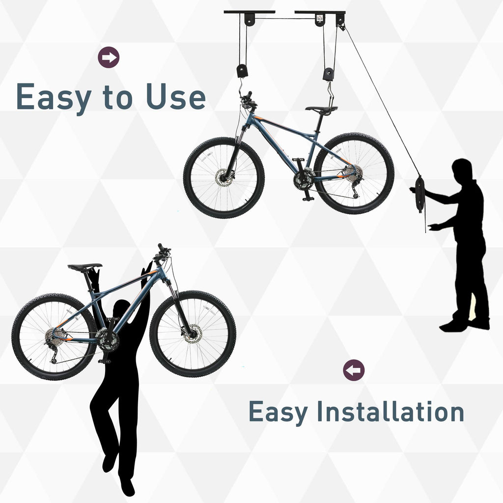 Supporto per Bici Paranco da Soffitto Max 20 Kg in Acciaio Nero