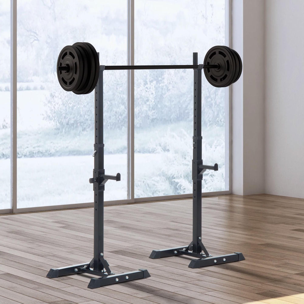 Questa coppia di supporti per bilanciere è adatta al vostro fitness domestico o alla palestra casalinga. Realizzato in tubi dacciaio, la solida costruzione può supportate fino a 150 kg. I supporti sono regolabili in altezza a 10 livelli per soddisfare tutte le vostre esigenze. Questa coppia professionale di supporti ti aiuta a creare un corpo perfetto!