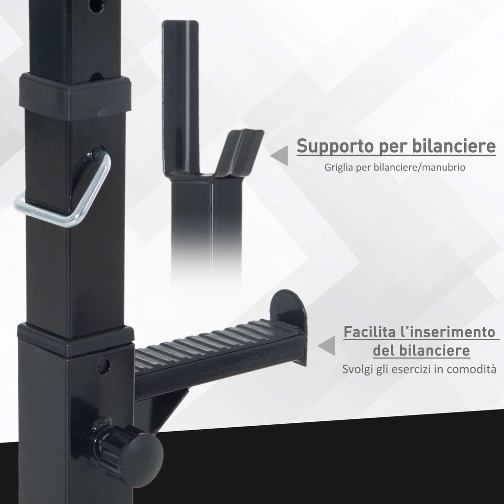 Supporto per Bilanciere Regolabile in Altezza su 10 Livelli in Acciaio Nero