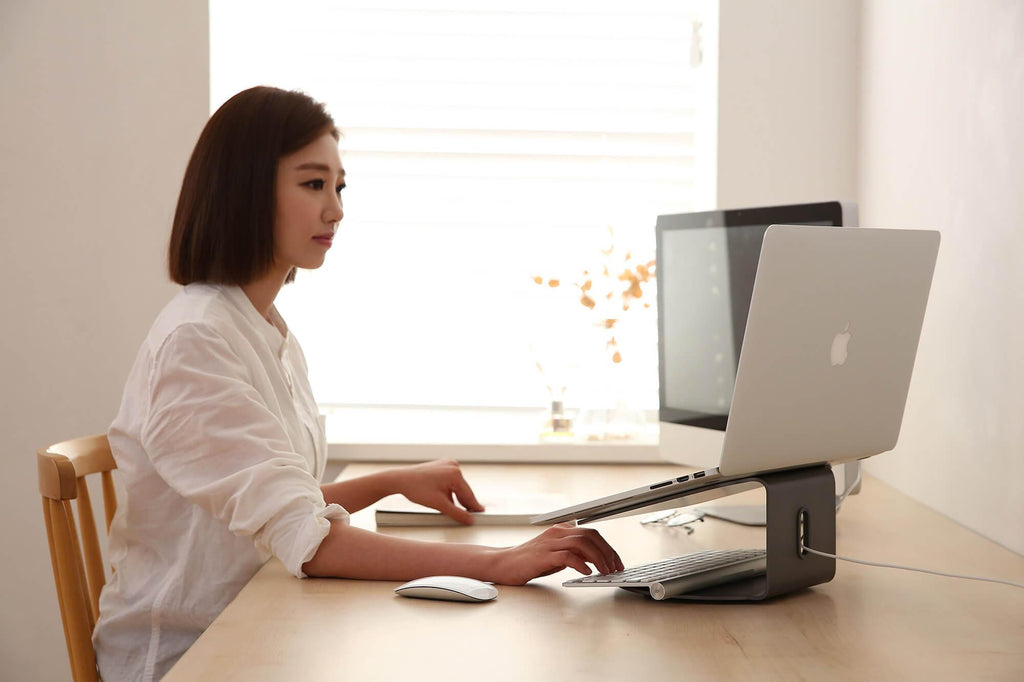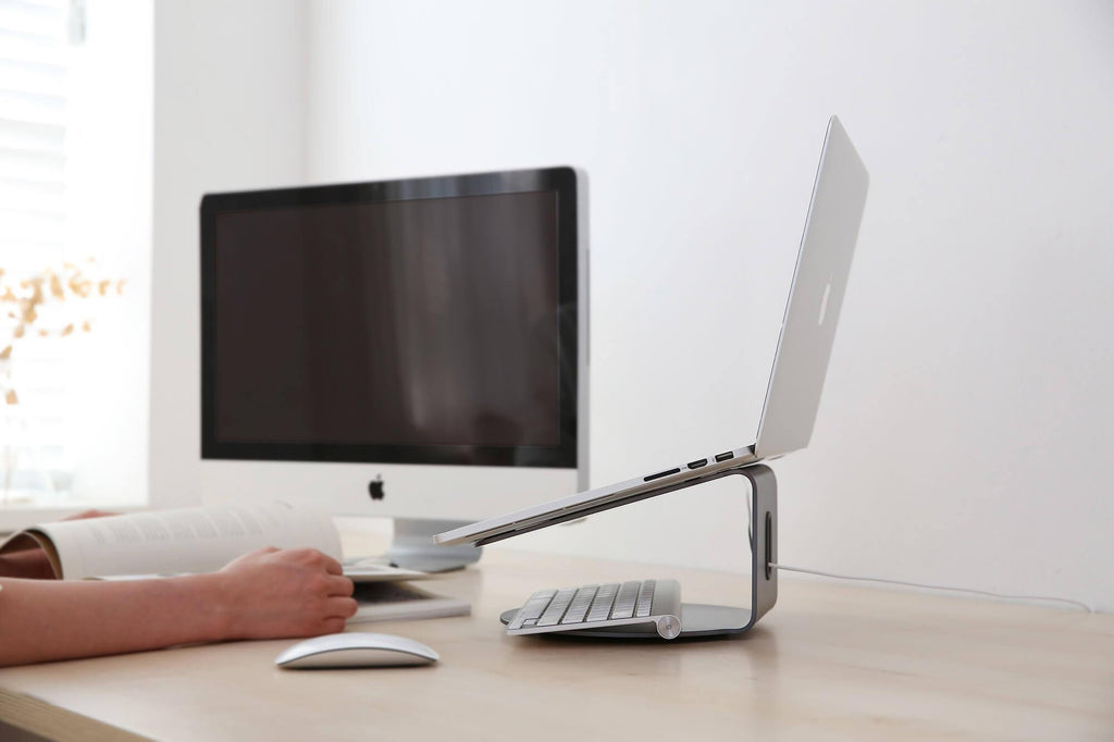 Eleva il portatile assicurando il giusto angolo di visuale, il massimo comfort per la digitazione e una corretta postura della schiena. Gli elementi antiscivolo in gomma ne garantiscono la massima stabilità. La base ruotante di 360° facilita la coindivisione dello schermo. ll foro passacavi e lo spazio sottostante consentono di liberare extra spazio sul piano di lavoro che risulta più ordinato e organizzato. La struttura in alluminio favorisce la dissipazione del calore ed evita il surriscaldamento del portatile. Compatibile con qualsiasi portatile fino a 173 .