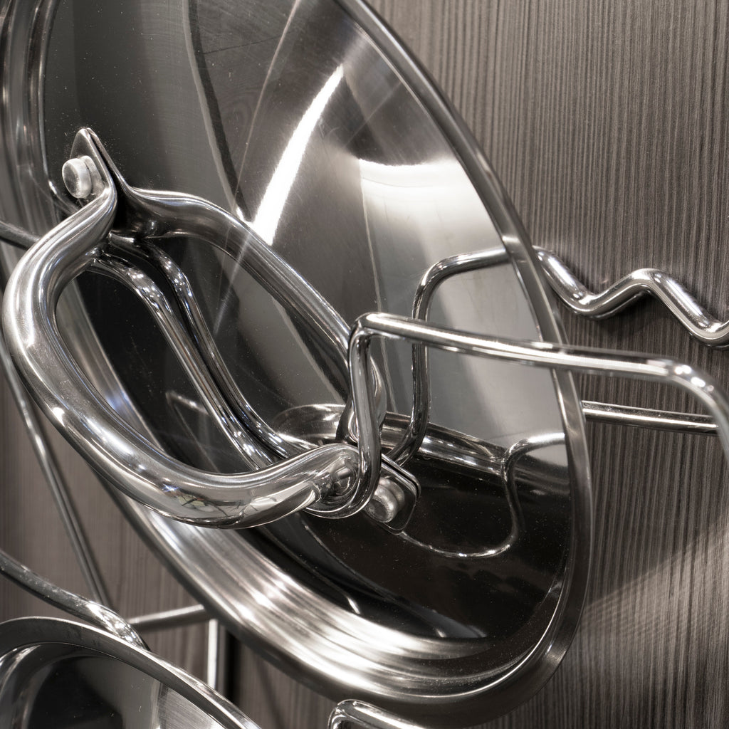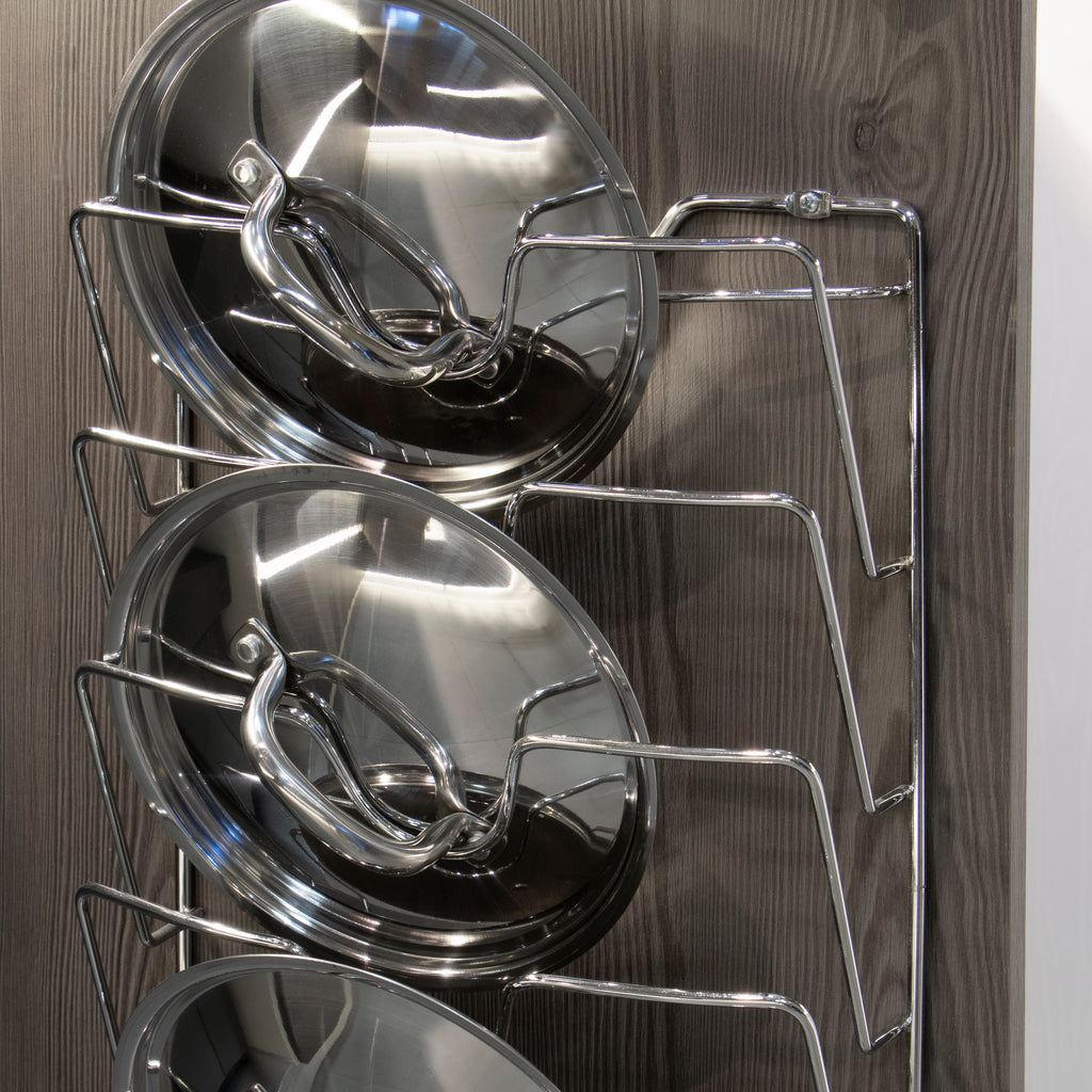 - Supporto organizzatore per appendere coperchi di pentole e casseruole.