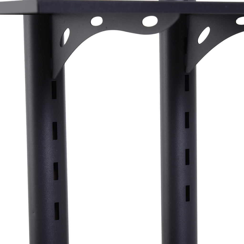 Questo stand supporto TV è caratterizzato da un telaio in metallo robusto con verniciatura resistente antiruggine.