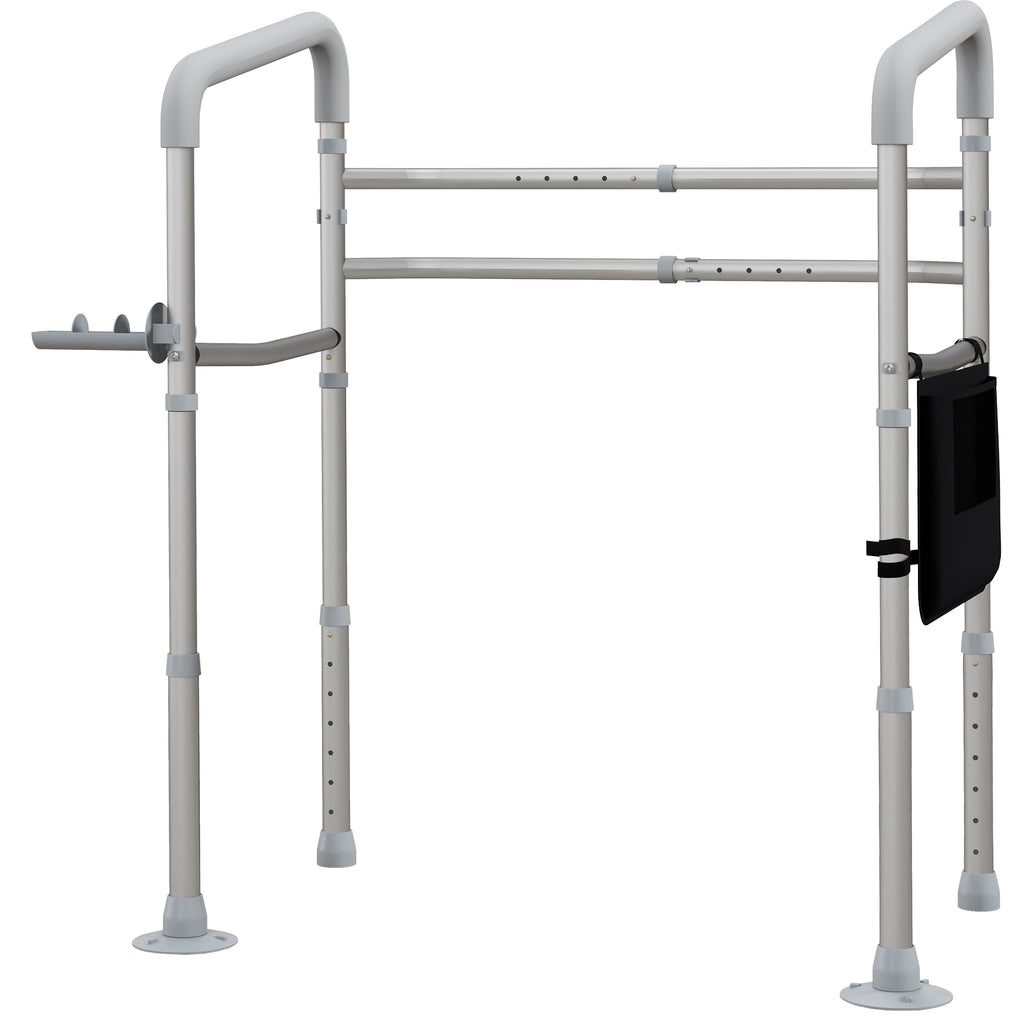 Il supporto per WC è una soluzione pratica e confortevole per le persone con difficoltà motoria. Grazie al suo design regolabile con 5 livelli di estensione e 7 livelli di altezza, si adatta alla maggior parte dei WC e alle esigenze di ogni persona. I piedini antiscivolo assicurano una presa stabile a terra e puoi usare la struttura anche come supporto per camminare.