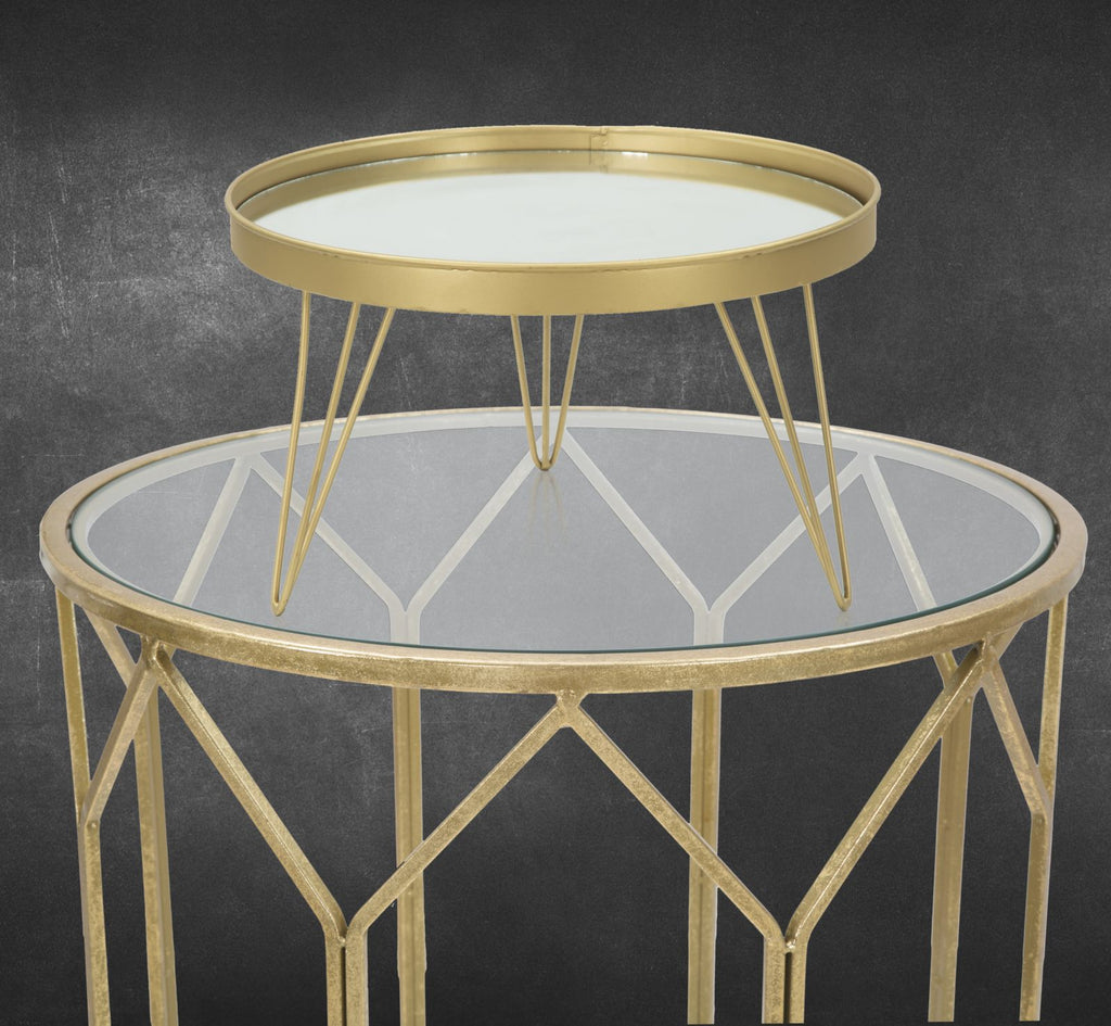 Svuotatasche in metallo con piano in vetro specchiato. Elementi dalle linee sottili e dai colori trend. Impreziosiscono con gusto il living o l'ingresso.