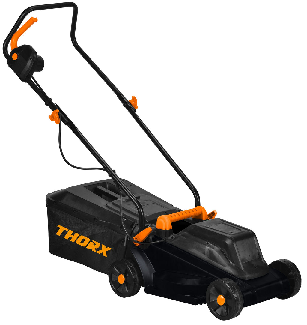 Tagliaerba a scoppio TX1000 Thorx con motore da 1000 watt e dotato di cesto raccoglierba l 30. Trazione a spinta e dotato di 3 altezze di taglio regolabili.