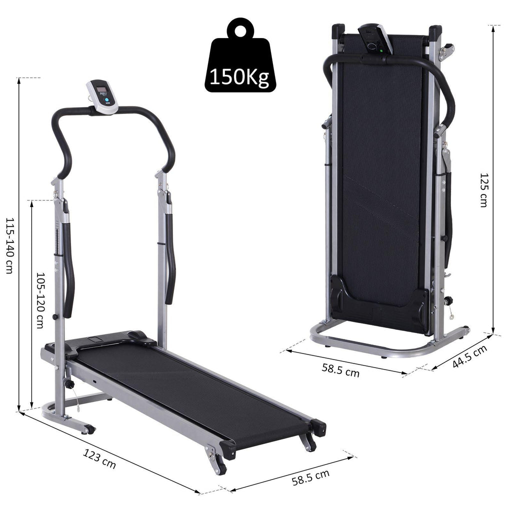 Mantieniti in forma e in esercizio con l'allenamento cardio grazie a questo tapis roulant meccanico. à? possibile regolare l'angolo di reclinazione e l'altezza dell'impugnatura in base alle proprie esigenze e abitudini di fitness. Dopo un semplice montaggio senza attrezzi, è possibile cominciare subito una camminata, una corsa lenta o una corsa a tutti gli effetti.Potrai monitorare il tempo, la velocità , le calorie bruciate e la distanza sul monitor, e migliorare le tue prestazioni giorno dopo giorno. Maggiore sicurezza con la superficie di corsa antiscivolo e l'impugnatura antiscivolo. E' possibile piegarlo e riporlo.