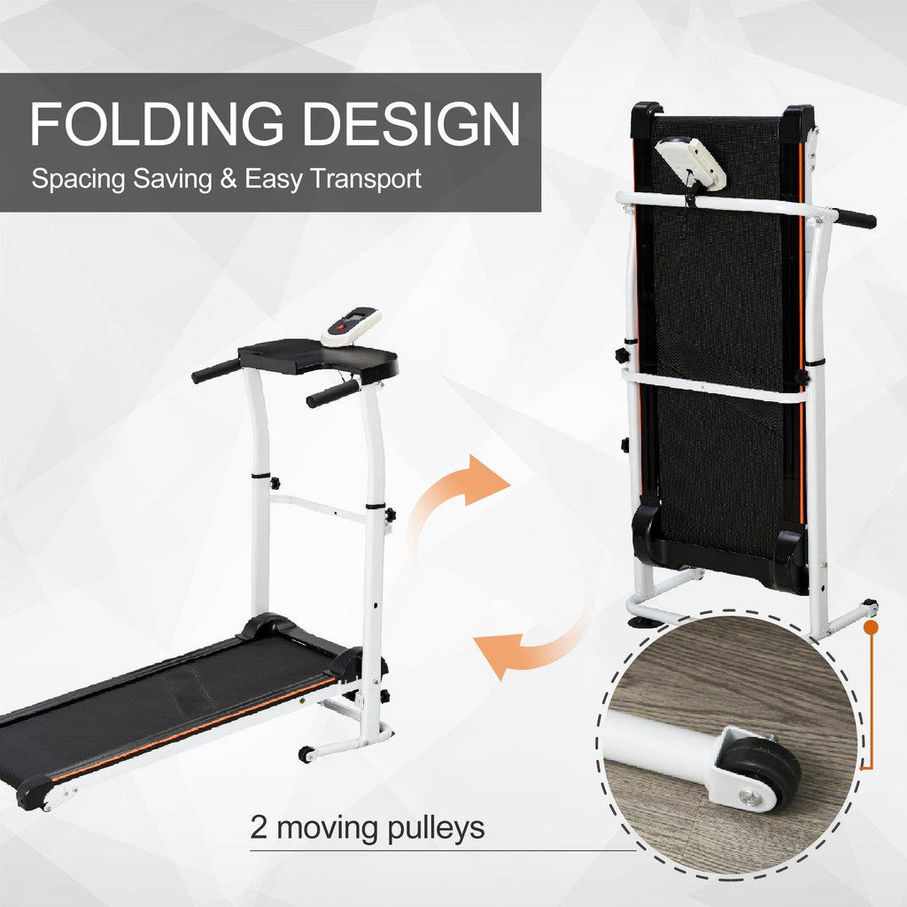 Tapis Roulant Meccanico Pieghevole con Schermo LED Bianco e Nero
