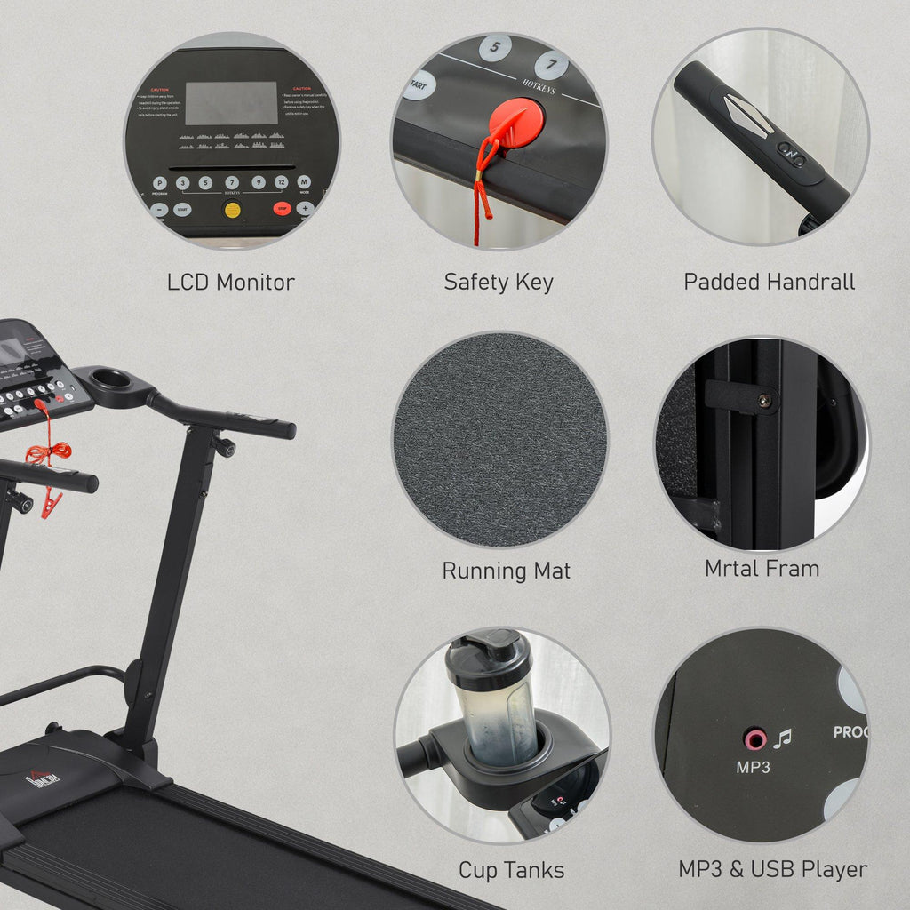 Tapis Roulant Motorizzato Pieghevole 14Km/h 750W 5 Programmi Nero