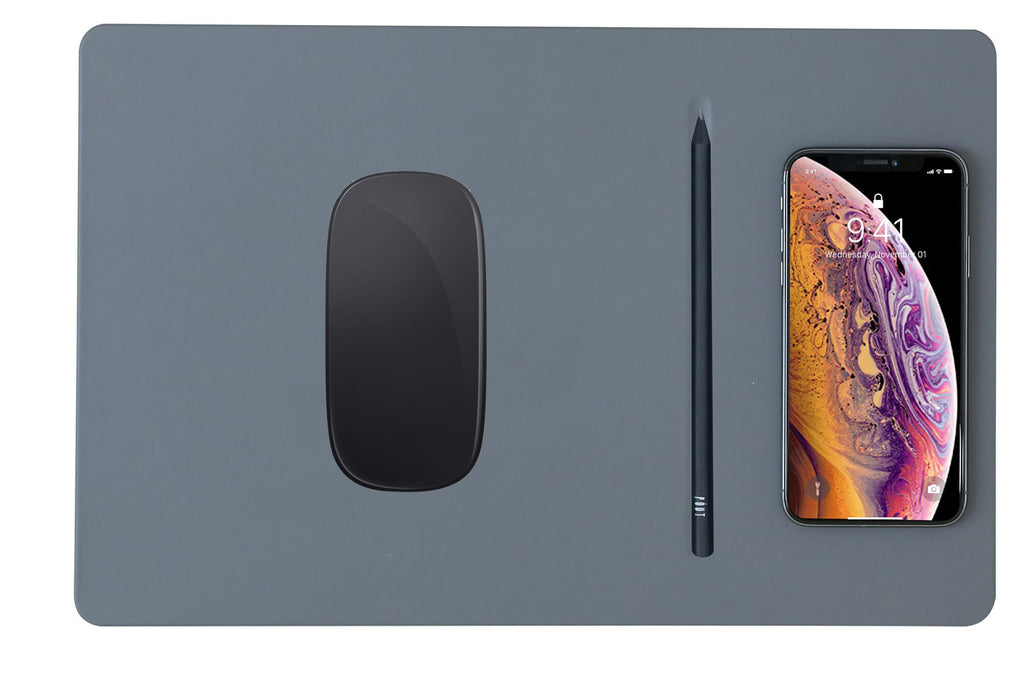 Tappetino per Mouse 34,6x22,5x0,5 cm con Base di Ricarica Wireless Veloce Grigio