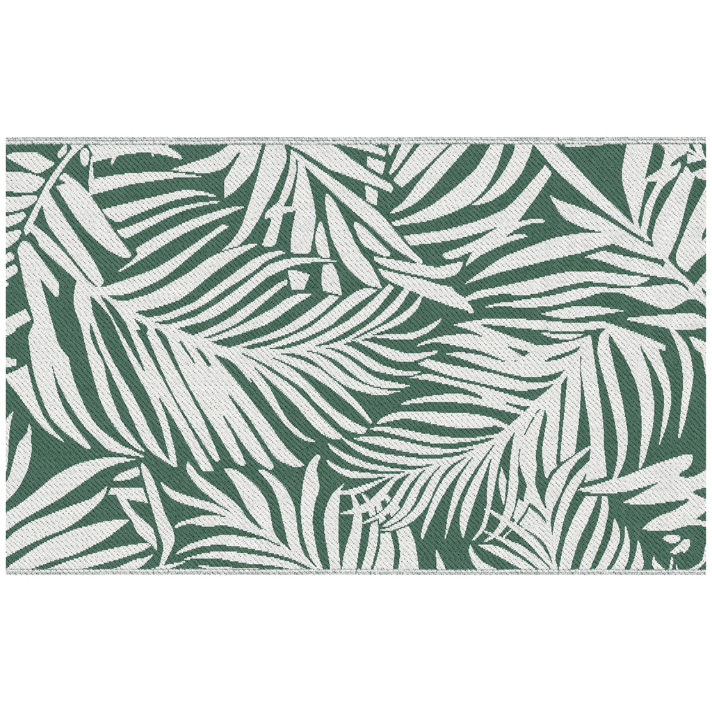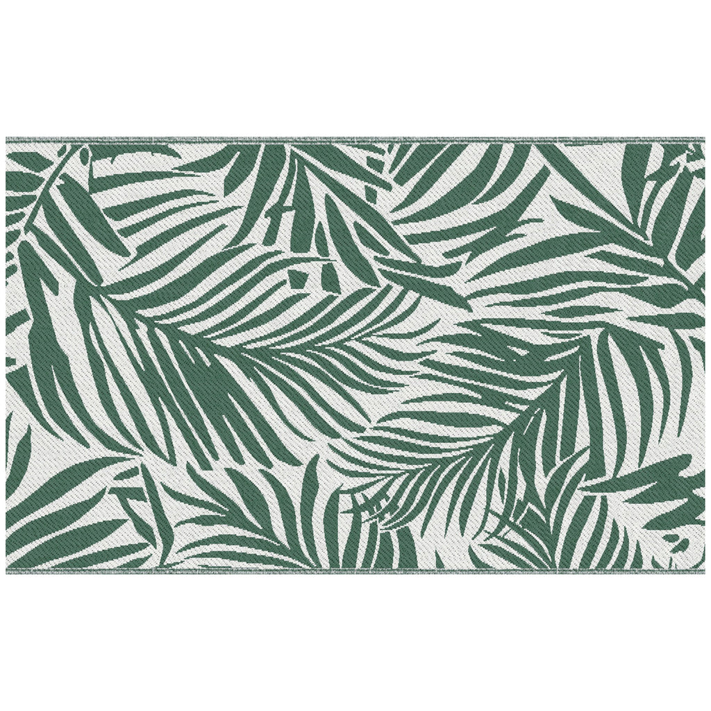 Decora i tuoi spazi all'aperto con l'esclusivo tappeto per esterno dal motivo a foglie. Dal design contemporaneo con colori brillanti e motivo reversibile, questo tappeto per balcone arricchisce istantaneamente qualsiasi spazio aperto. Ideale per terrazze, portici, campeggio e molti altri spazi. Tappeto da esterno con motivo tropicale ideale per aggiungere un tocco decorativo a qualsiasi area. Design reversibile double-face: permette di cambiare il motivo quando si desidera. Tappeto versatile da utilizzare sia in casa (terrazzo, balcone) che all'esterno (campeggio, parco, ecc.). Dotato di 4 lacci nei 4 angoli per mantenerlo fermo. Tappeto per terrazza in polipropilene anti-UV ad alta densità 310 g/m² con bordi rifiniti per evitare lo sfilacciamento. Manutenzione facile con aspirapolvere o panno umido.