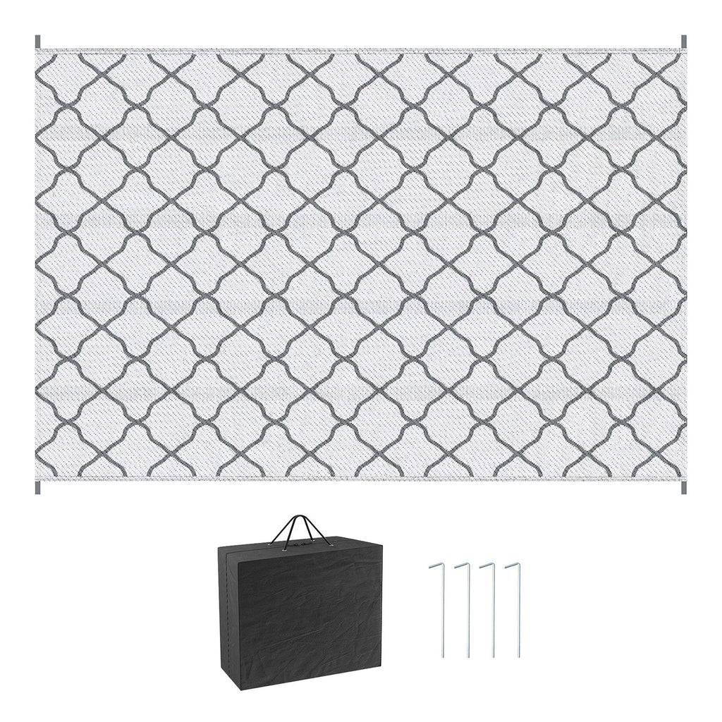 Il tappeto da esterno, impermeabile e resistente, è perfetto per ogni momento all'aperto. Ideale per campeggi, picnic o giardini, basta piegarlo e inserirlo nella borsa di trasporto inclusa per portarlo senza fatica con te. È resistente agli strappi e all'acqua, e ha un design reversibile che ti consente di utilizzarlo dal lato che preferisci! Tappeto da esterno adatto per campeggio, picnic, giornate al parco ecc.. Facile da ripiegare e trasportabile ovunque desideri. Design reversibile, entrambi i lati del tappeto da giardino possono essere utilizzati. Realizzato in polipropilene, con un rivestimento protettivo per evitare lo sbiadimento e i danni causati dal sole. Sacca per il trasporto inclusa.