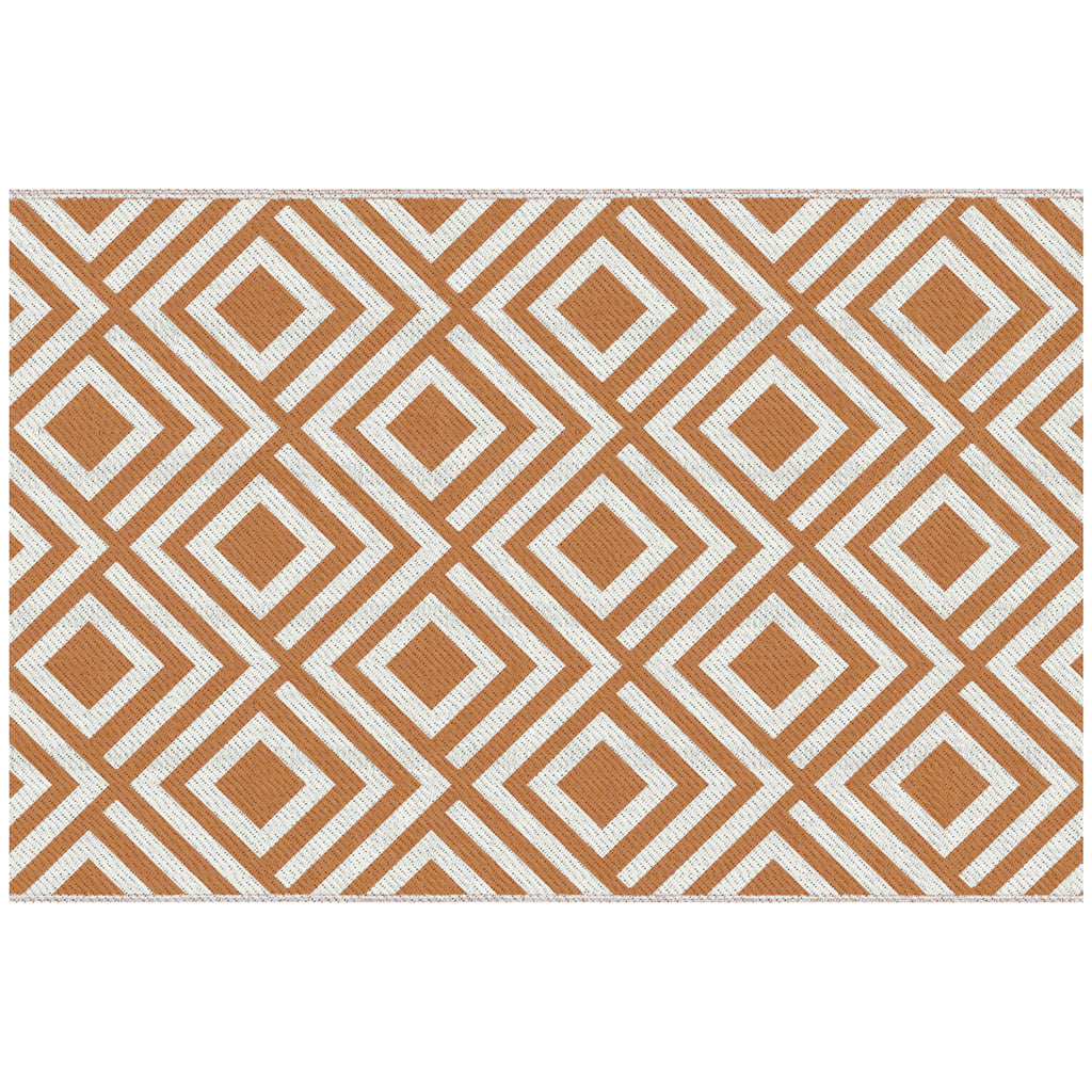 Tappeto da Esterno Reversibile 182x274 cm con Fantasia Geometrica Marrone e Bianco