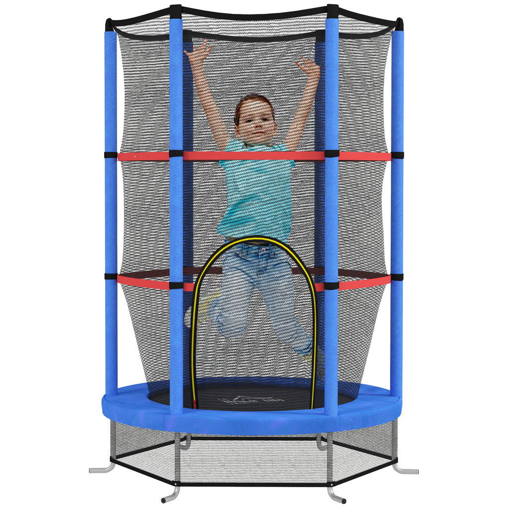 Tappeto Elastico per Bambini 3-6 Anni Ø140x190 cm con Rete di Protezione Blu e Nero