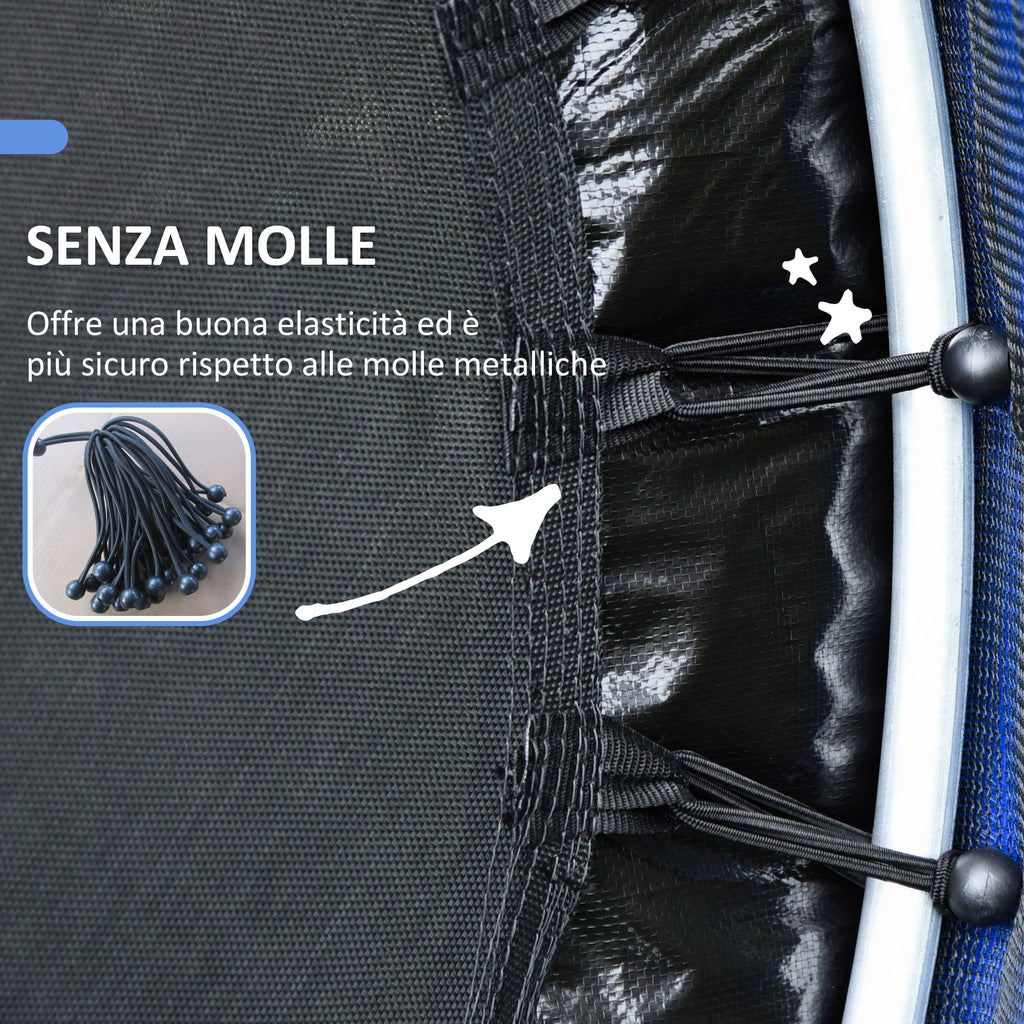 - STRUTTURA SICURA: Il trampolino elastico per bambini in PP garantisce una lunga durata nel tempo. La rete di sicurezza e il rivestimento dei tubi metallici in plastica prevengono il rischio di incidenti e i 3 ingressi a cerniera facilitano l'ingresso