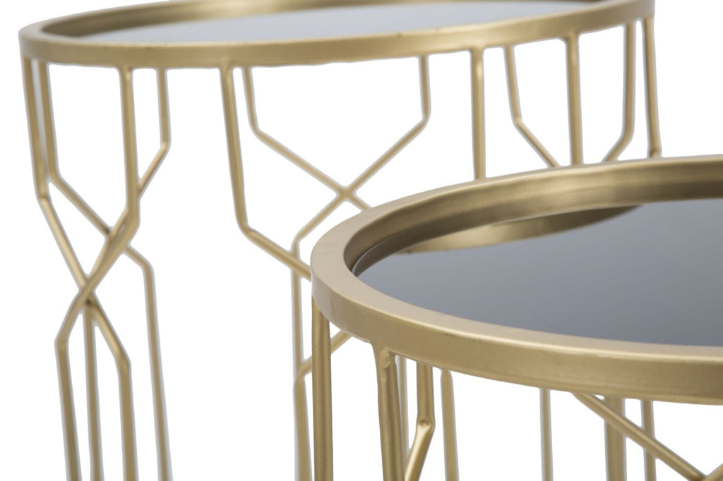 Tavolinetti Glam Lignes Tris Ø40x63-35x57,5-30x53,5 cm in Ferro e Vetro Oro