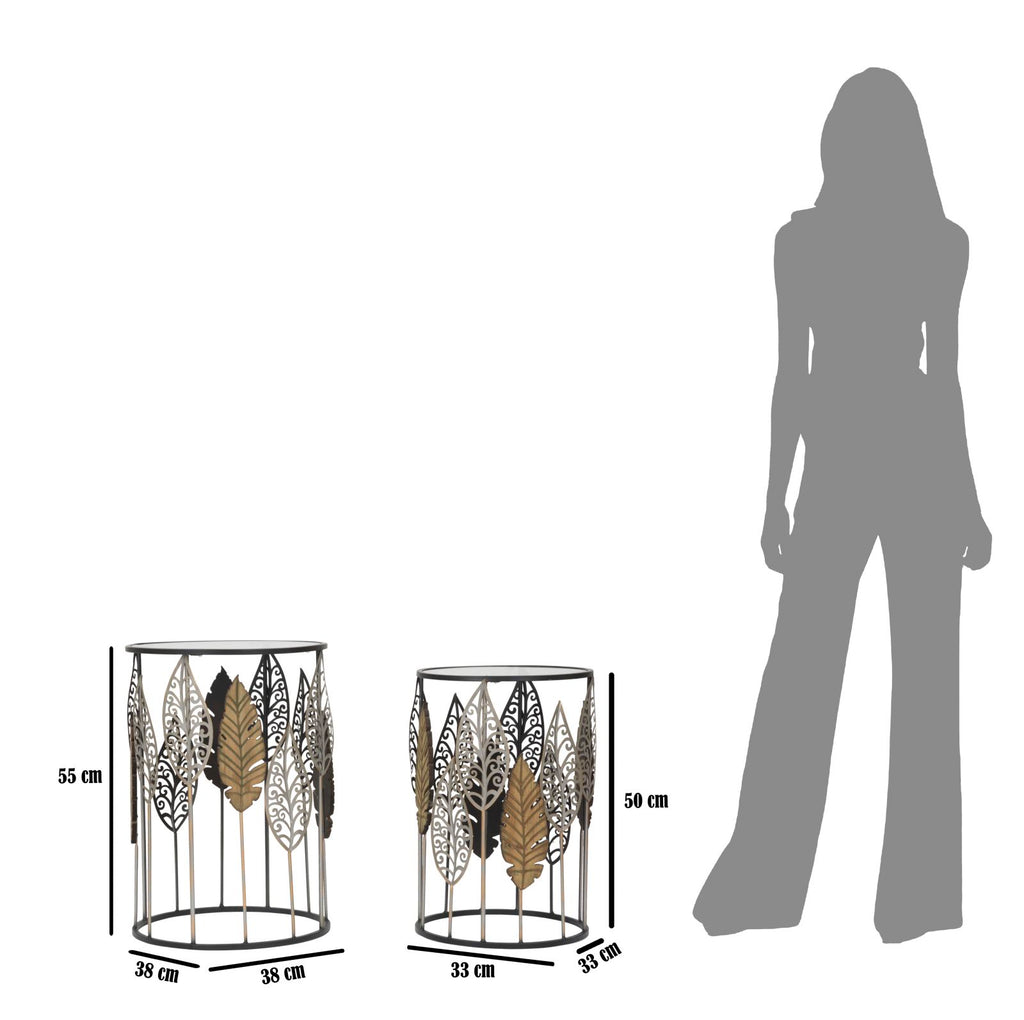 Tavolinetti in Ferro E Legno Foglie Coppia 38x55-33x50 cm in Ferro MDF e Vetro Multicolor