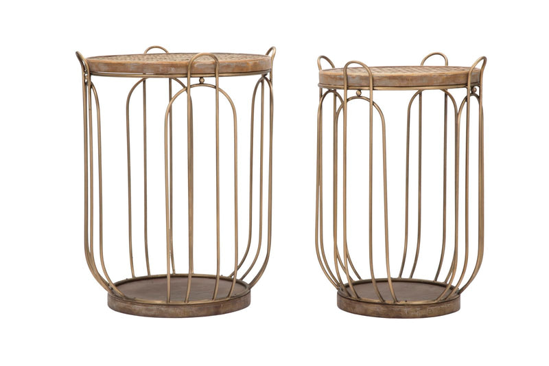 Tavolinetti Marrakech con Contenitore Coppia Ø52x66,5 - 45,5x62,5 cm in Ferro MDF Marrone