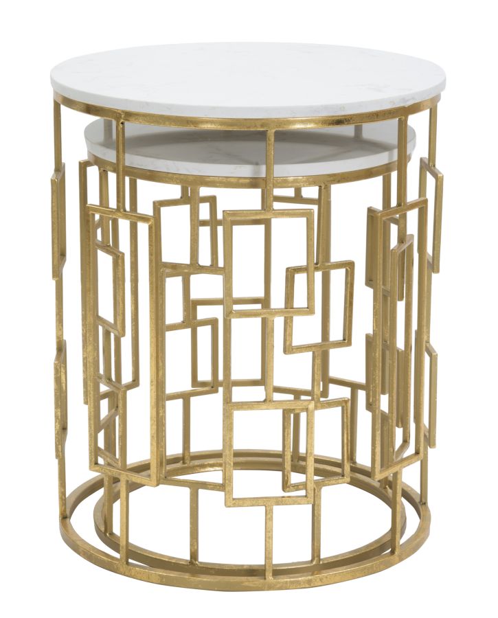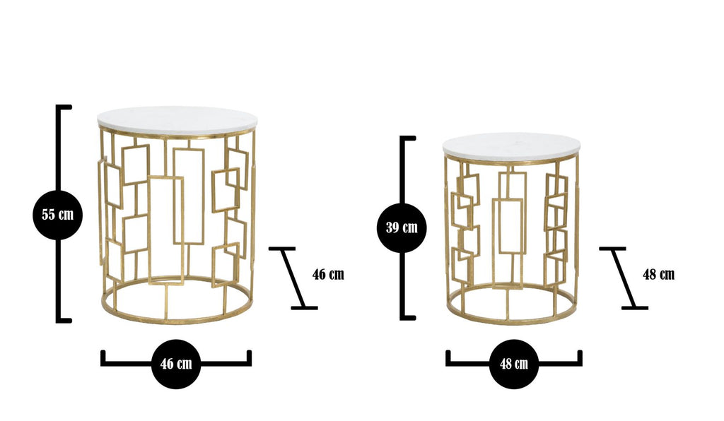 Tavolinetto Cube Coppia Ø46x55-39x48 cm in Ferro e Marmo Oro e Bianco