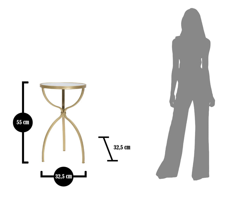 Tavolinetto Glam Tridh Ø32,5x55 cm in Ferro MDF e Vetro Oro e Multicolor