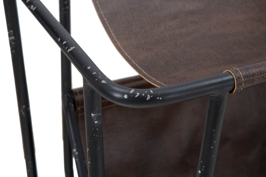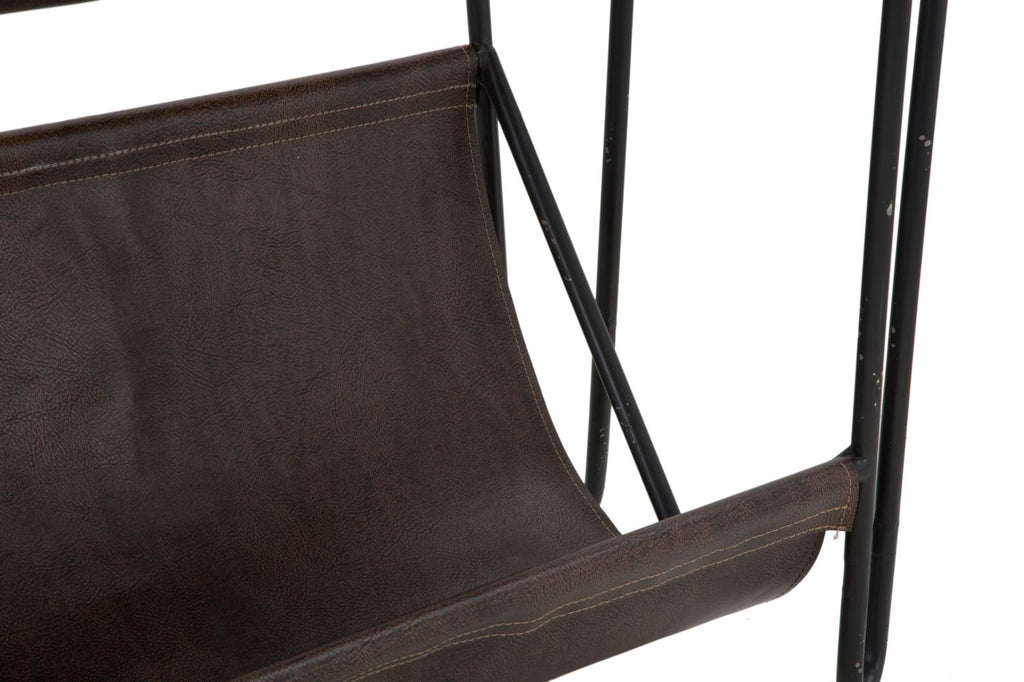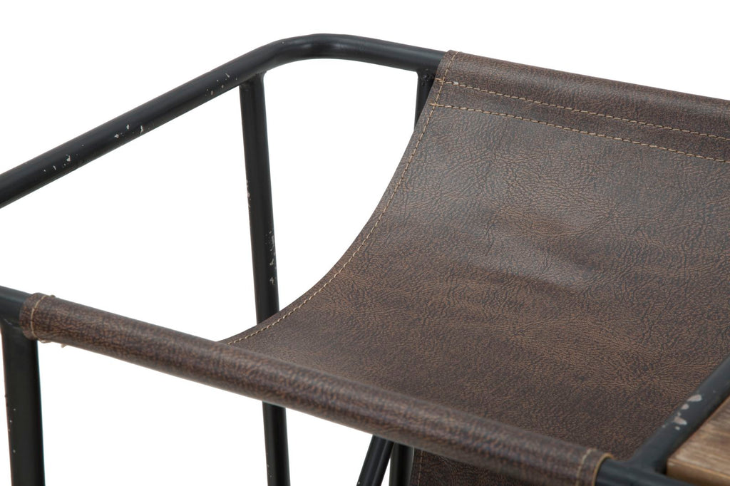 Tavolinetto Porta Giornali Simply 83,5x42x61 cm in Ferro e Legno di Abete e PU Nero e Marrone