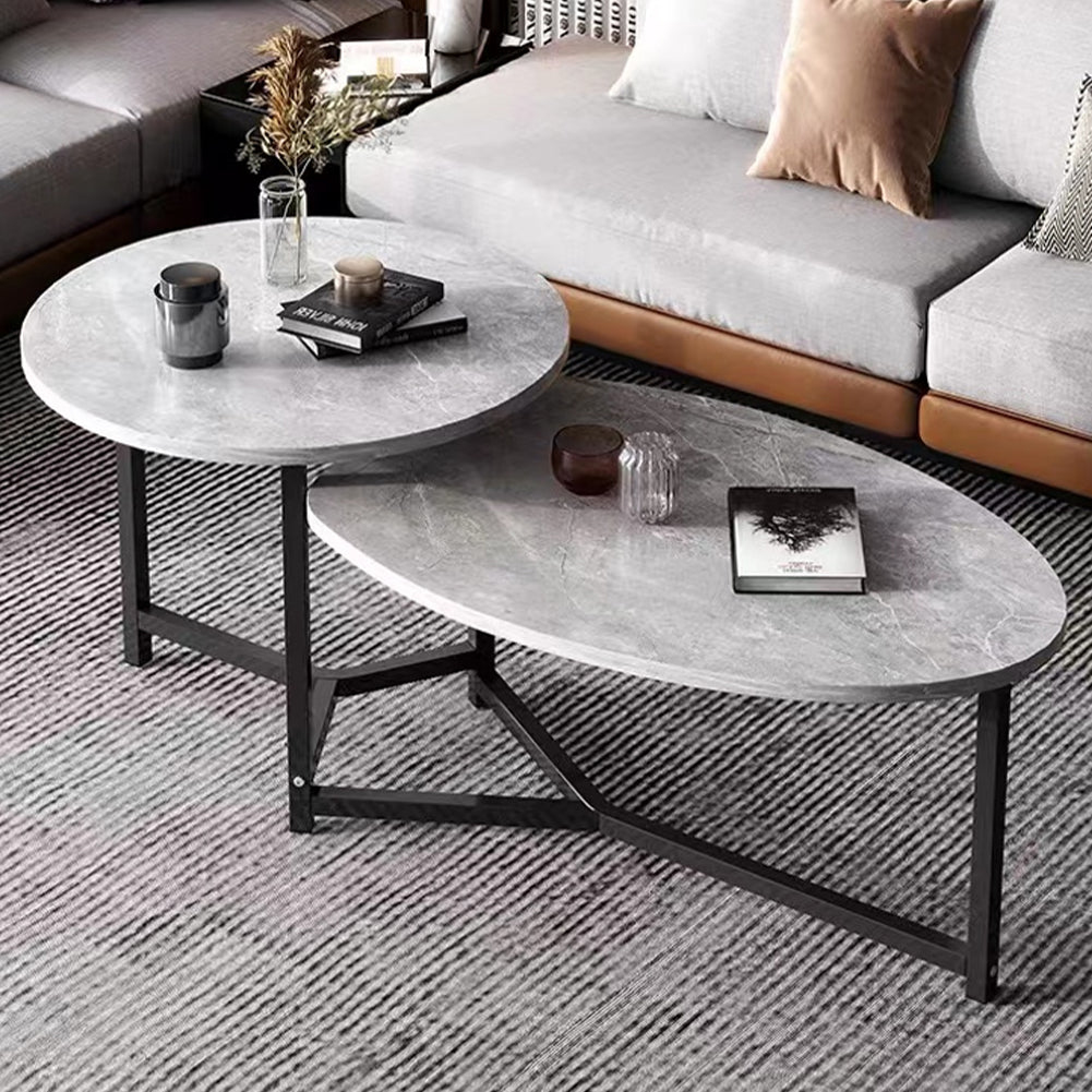 Tavolino Basso da Caffè 2 Ripiani Luxury Effetto Marmo Tavolo da Salotto Grigio