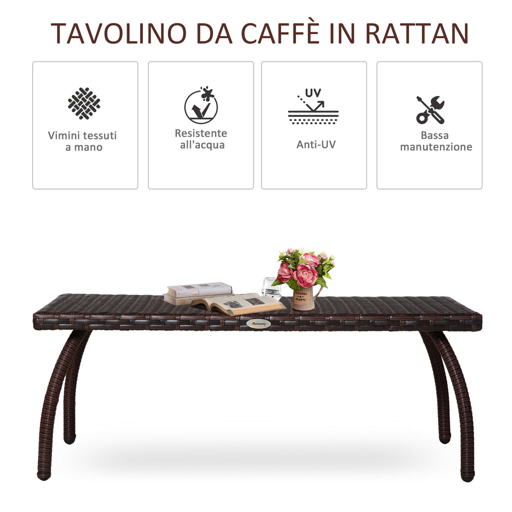 Tavolino Basso da Giardino 90x50x35 cm in Rattan Marrone