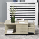 Tavolino da Caffè 2 Cassetto 2 Mensole 70x70x35 cm con Ruote in Legno