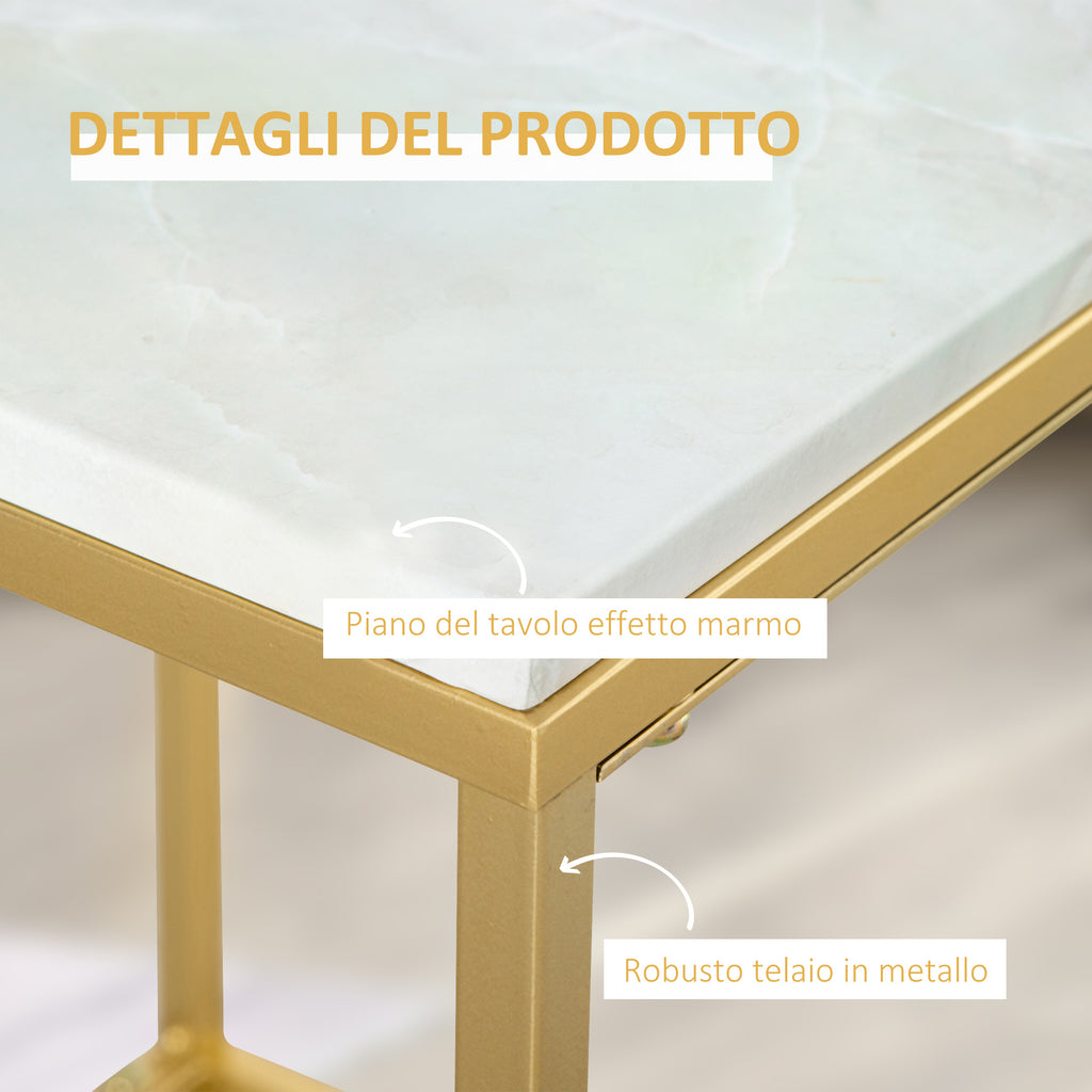 - Tavolino moderno ed elegante con struttura color oro e finitura effetto marmo