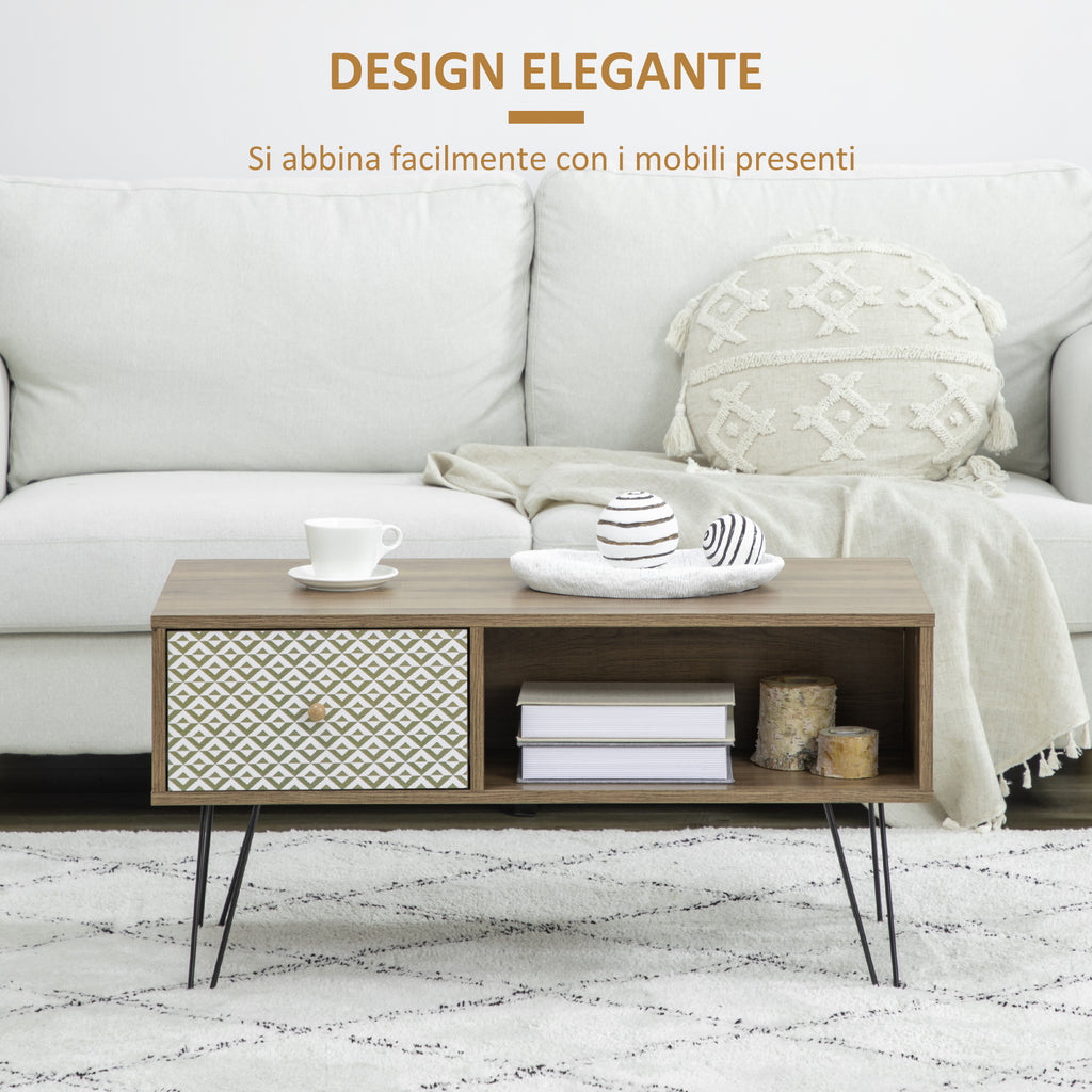 Tavolino da Caffè 90x45x46 cm con Ripiano Aperto e Cassetto in Truciolato e Metallo Marrone e Nero