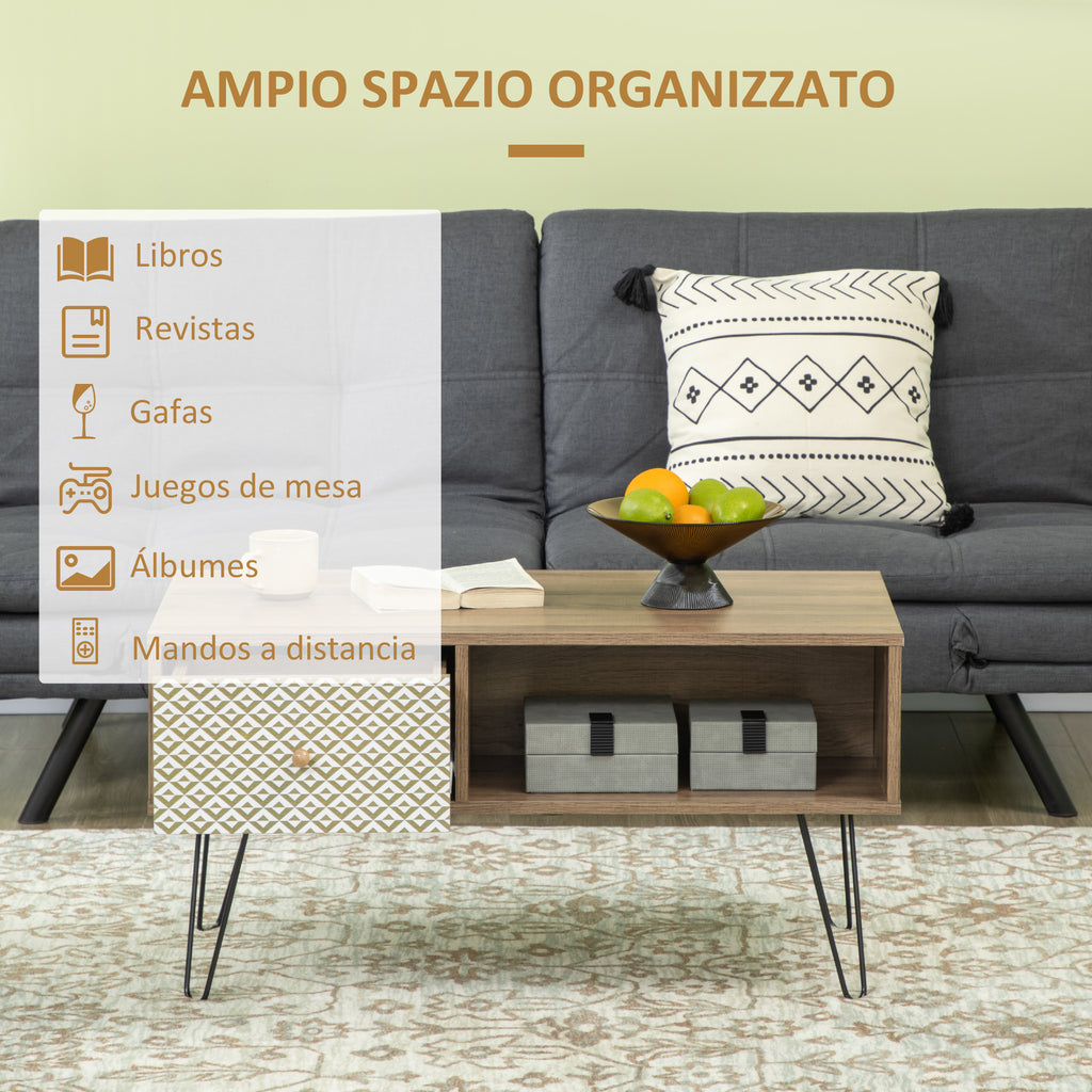 - AMPIO SPAZIO: Questo tavolino da caffè è dotato di un cassetto, di un ripiano aperto, di uno spazio portaoggetti sul retro e di un ampio piano d'appoggio, offrendoti spazio sufficiente per esporre e riporre ordinatamente oggetti di varie dimensioni come libri, giocattoli, materiale da ufficio, fotografie ecc