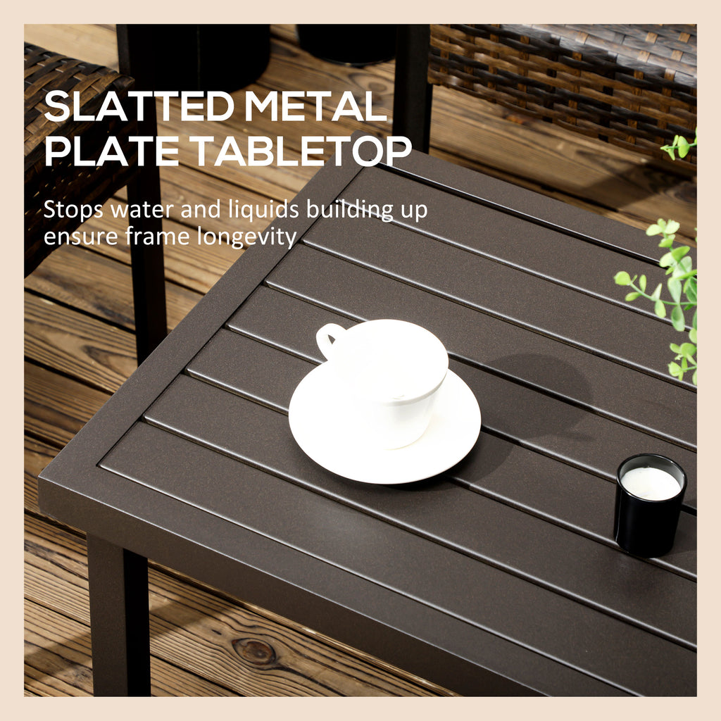 Questo tavolino da caffè porterà il tuo arredamento esterno e i tuoi pomeriggi estivi a un livello superiore. Il tavolino da giardino è realizzato con una resistente struttura in acciaio e un piano a doghe in metallo, resistente e facile da pulire con dei semplici panni umidi. Puoi utilizzarlo per tenere la tua tazza di caffè ma anche come supporto per le piante o altri soprammobili che desideri esporre ai tuoi ospiti, rendendosi una scelta perfetta per tutti gli spazi esterni.