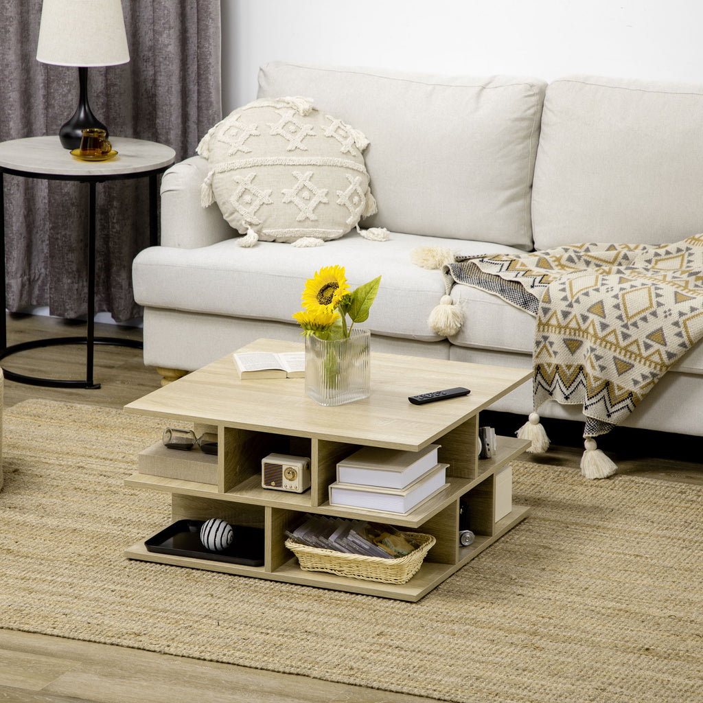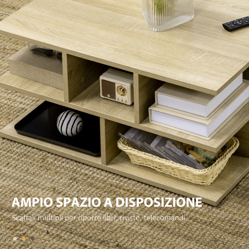 Tavolino da Caffè a 2 Livelli 70x70x36,5 cm con Ripiani Aperti in Truciolato color Legno