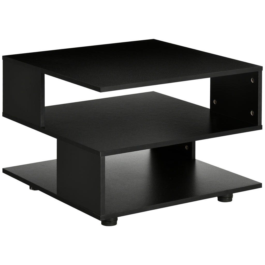 Tavolino da Caffè Asimmetrico 60x60x45 cm con Ripiani e Piedini Regolabili in Legno Nero