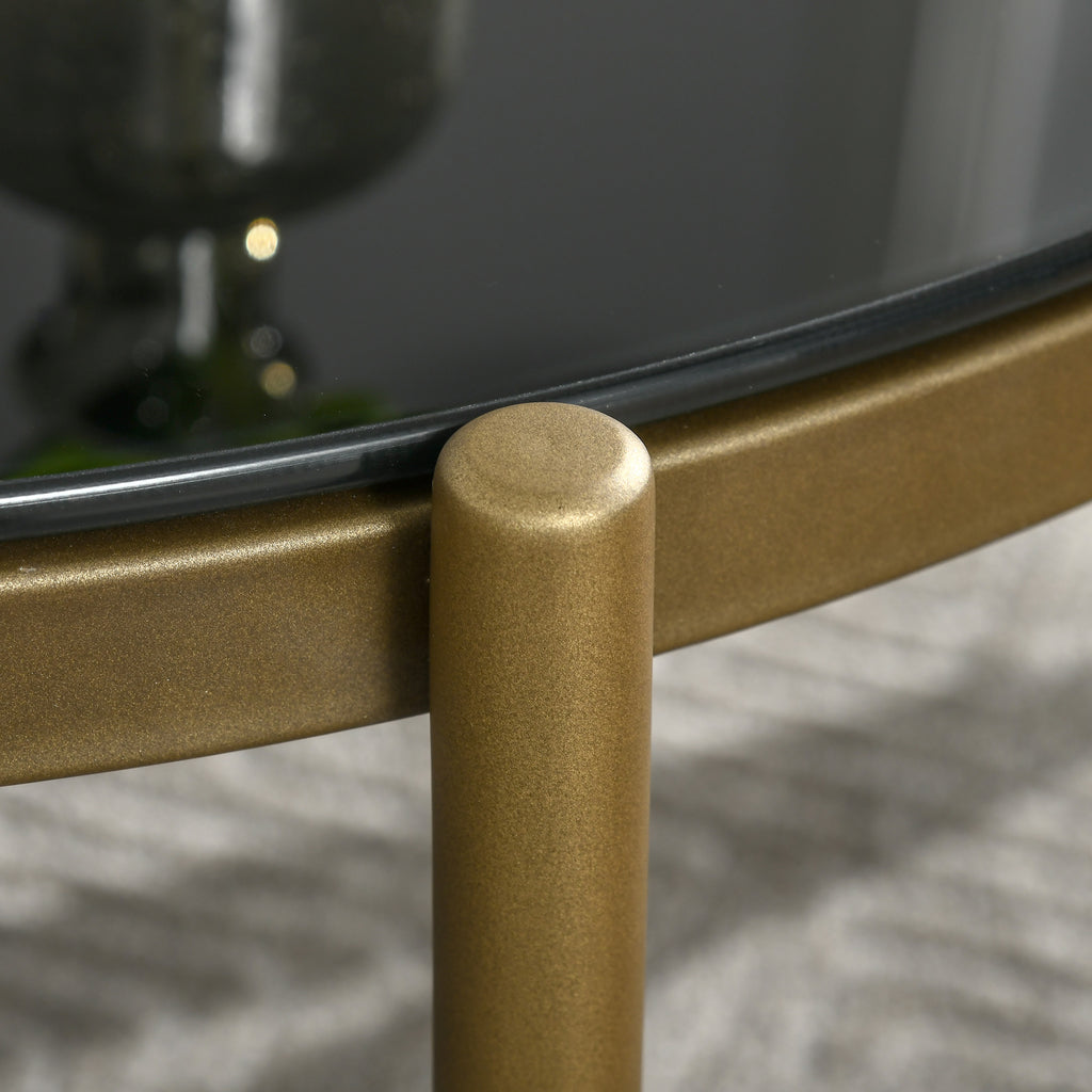Tavolino da Caffè con Piano in Vetro Temperato Ø85x41 cm Base in Metallo Nero e Oro