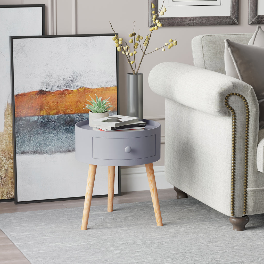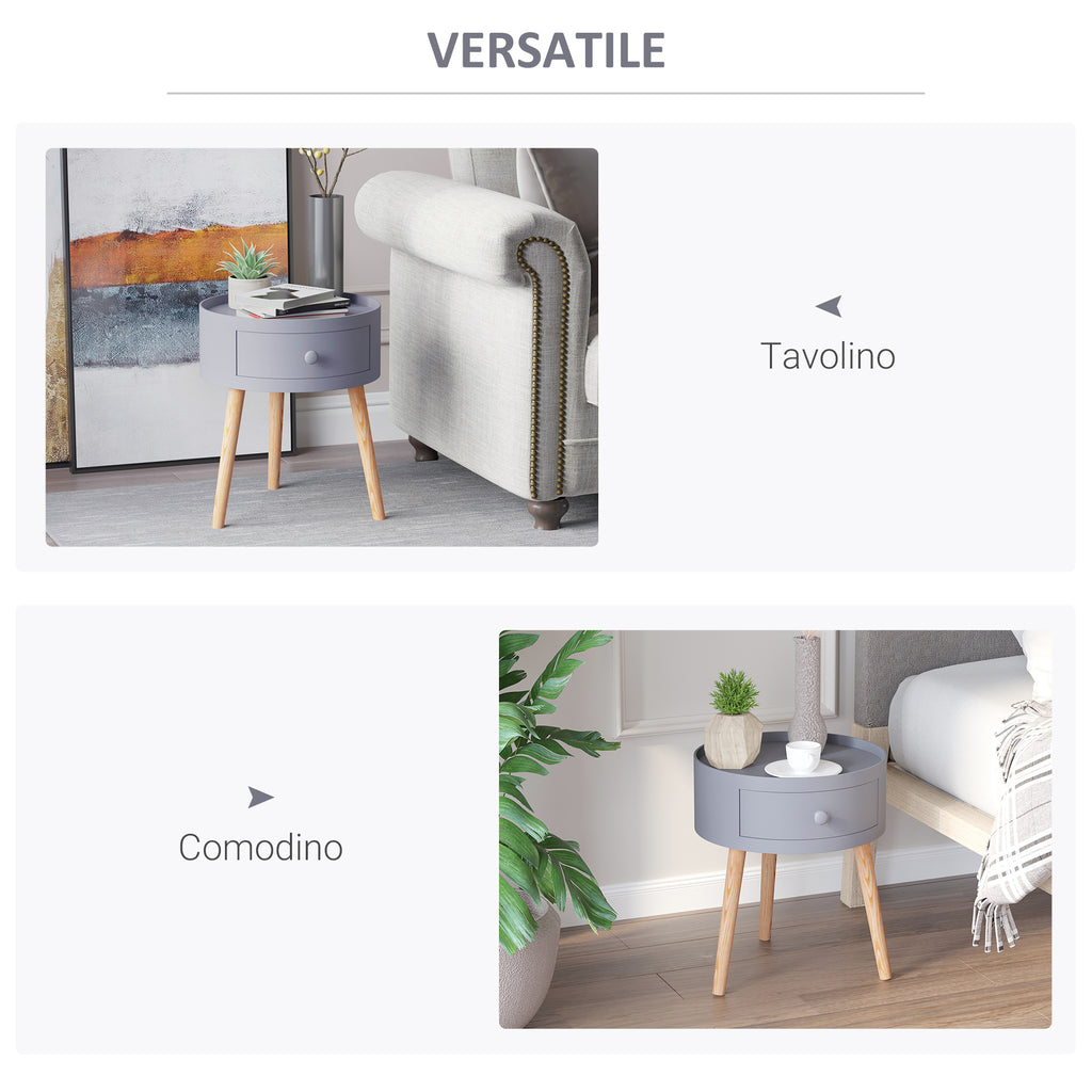 Tavolino da Caffè Rotondo con Cassetto Moderno Grigio Ø38x45 cm