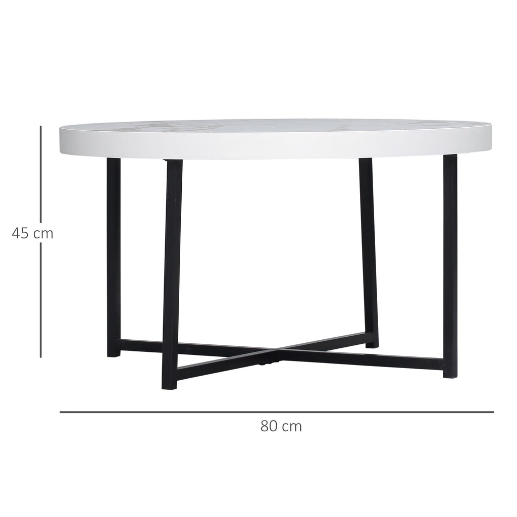 Tavolino da Caffè Rotondo con Piano Effetto Marmo Ø80x45 cm in MDF e Gambe in Metallo Bianco
