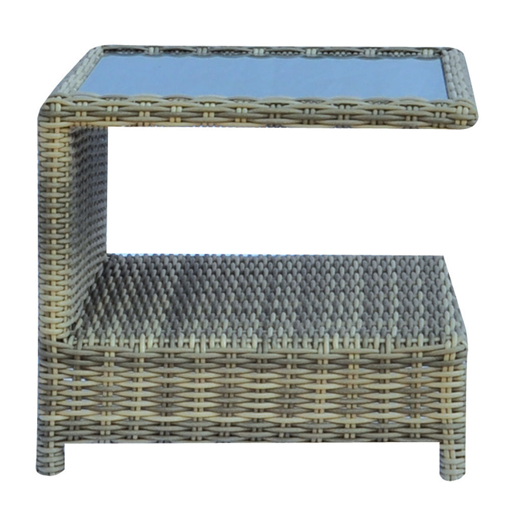 Tavolino da Esterno in Wicker e Vetro 2 Ripiani Vorghini Kubu Nero