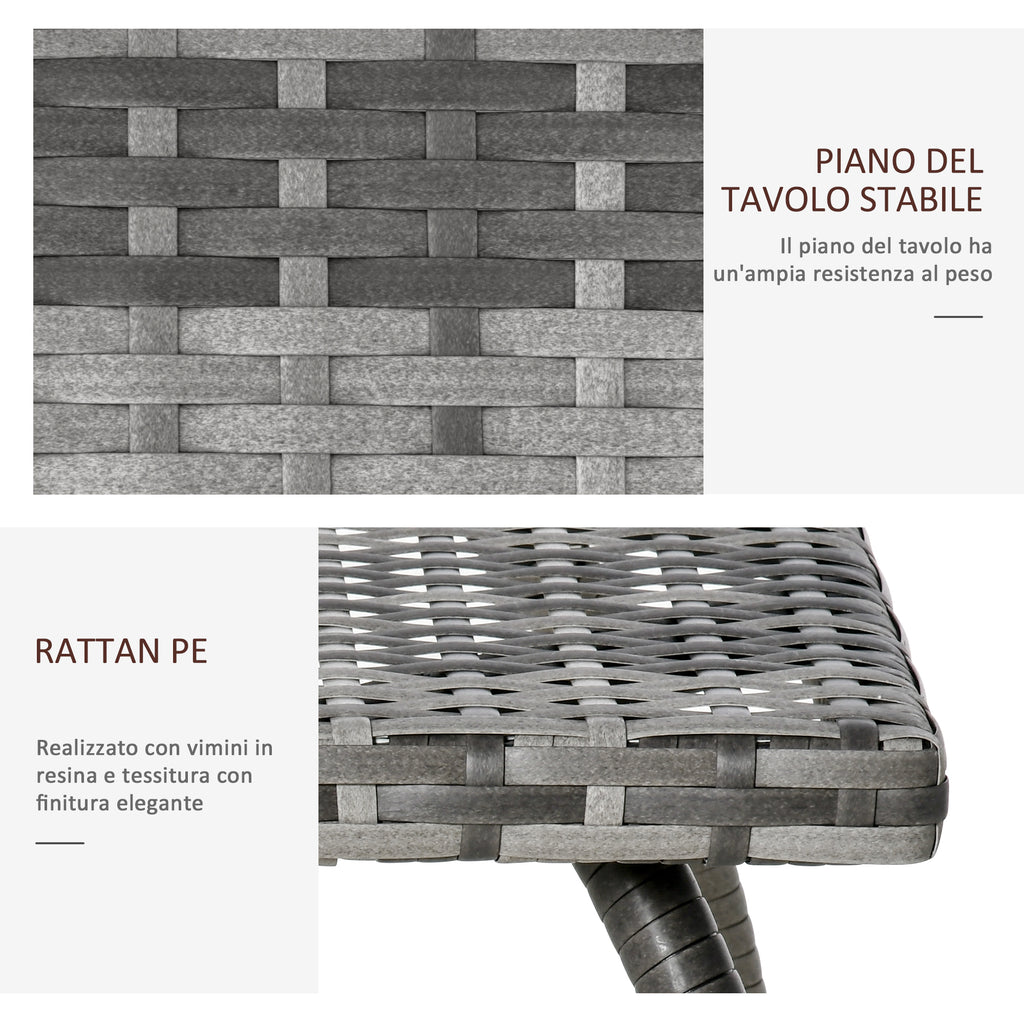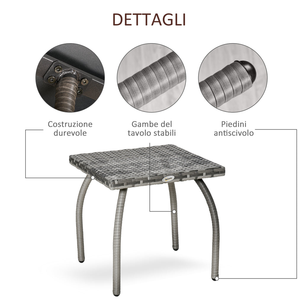 Tavolino da Giardino 45x45x44 cm in Rattan Sintetico Grigio
