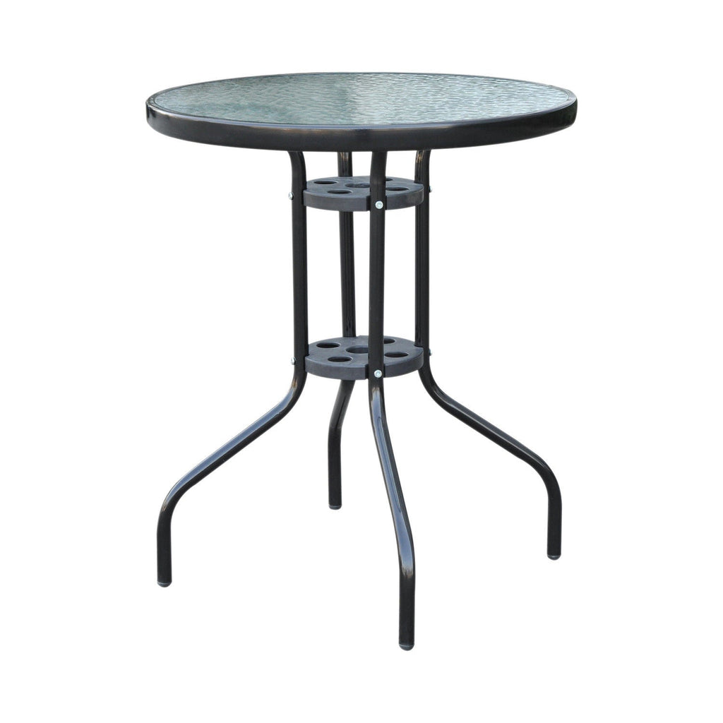 Tavolino da Giardino In Ferro con Piano in Vetro Temperato Nero Ø60x70 cm