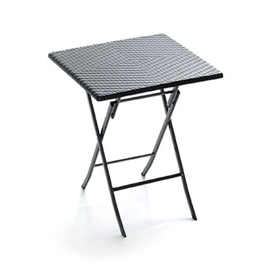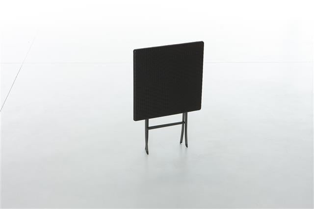 Tavolo struttura in Ferro verniciata a polvere colore Grigio scuro, piano d'appoggio in HDPE (Polietilene Alta Densità) colore Nero con trattamento UV, spessore piano d'appoggio cm 2.8,cm 62 X 62 h 73 (aperto). cm 94.5 X 62 X 9.5 (chiuso), sezione tubolari mm. 14 X 28, spessore tubolari mm 1.0